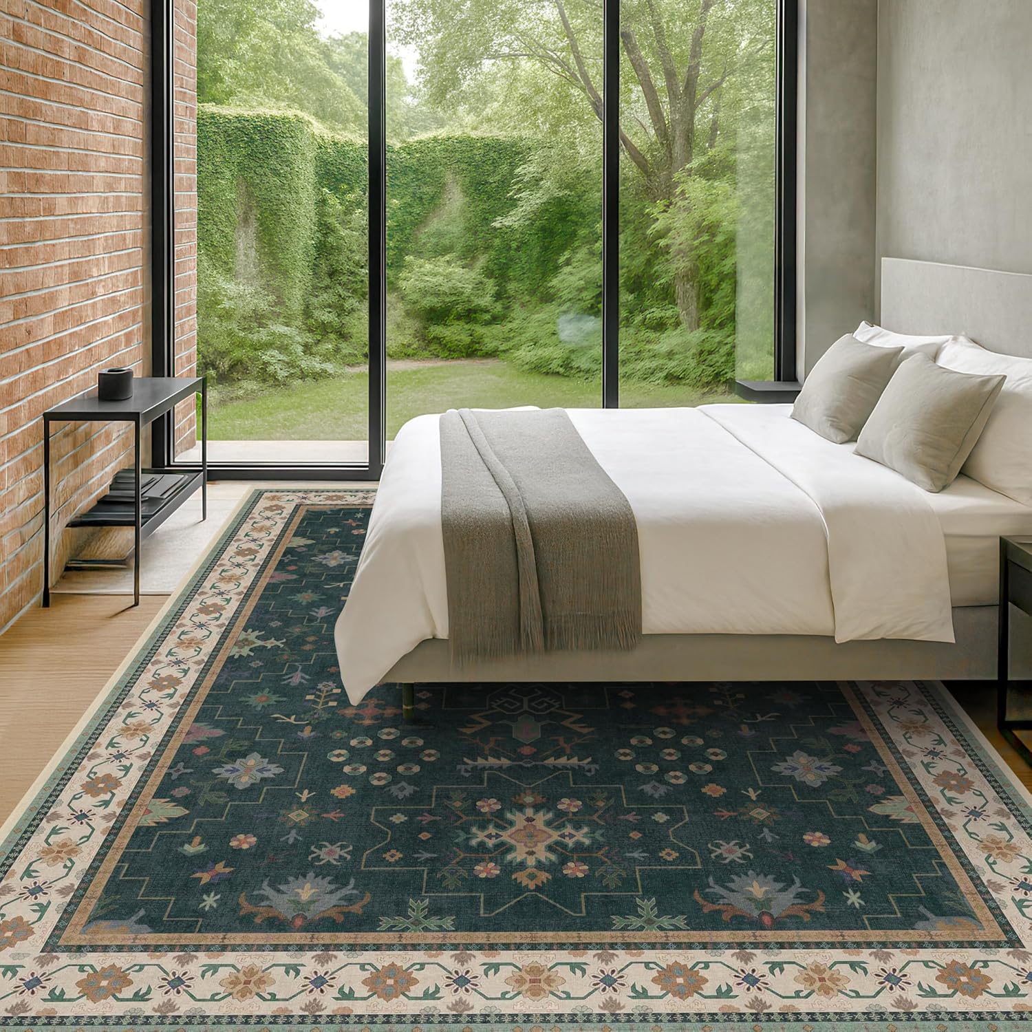 - Stylishly Versatile Design: Transform your living space with our rug's vintage, dark green hues. Its eclectic design, featuring floral and boho patterns, infuses a touch of timeless charm and unique aesthetic, making it a perfect fit for any room in your home