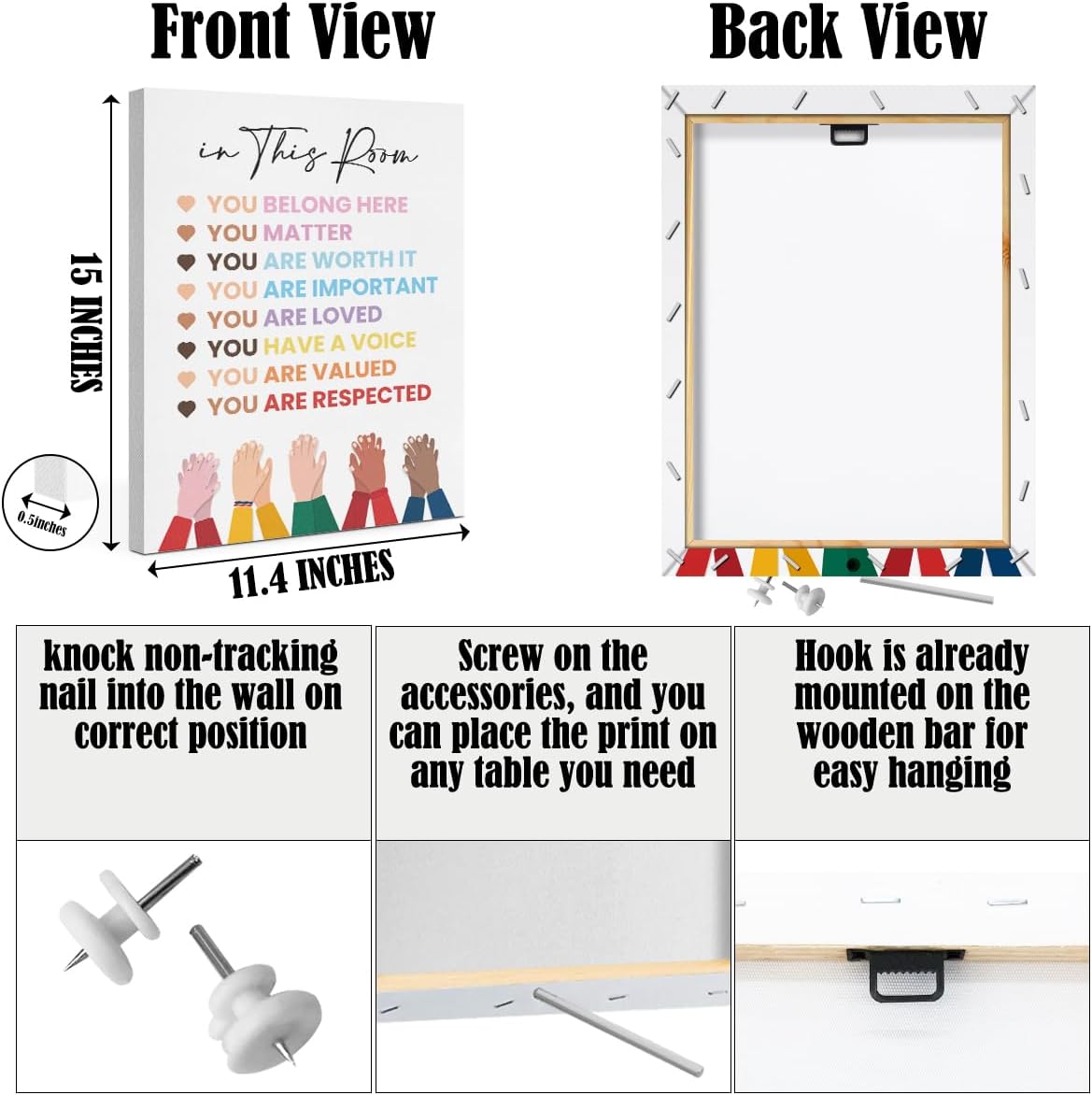 Inspirational Diversity Wall Art in This Room Watercolor Canvas Painting Prints for Classroom Nursery Home Living Bedroom Office Wall Decor Framed Equality Artwork Gifts