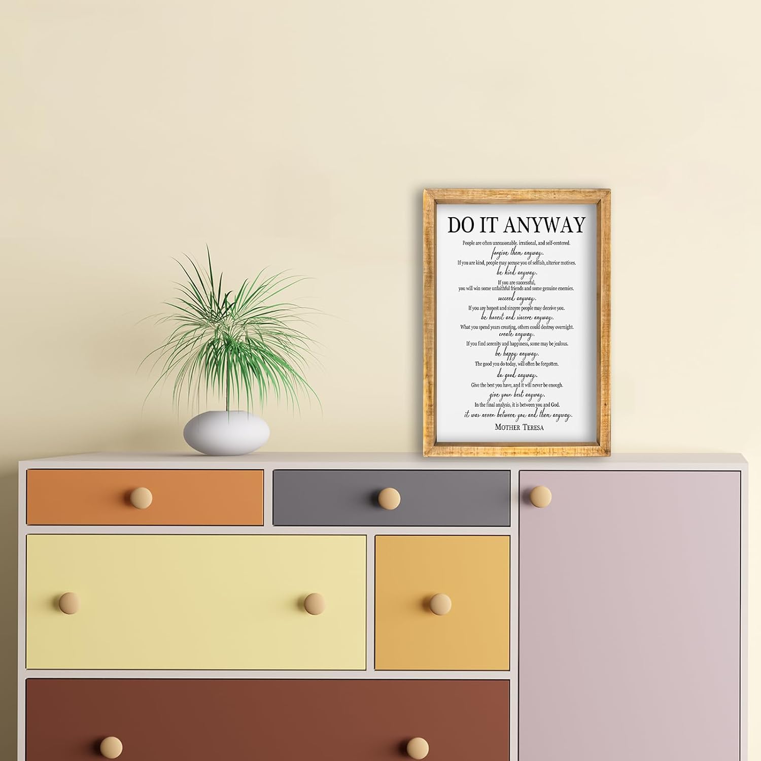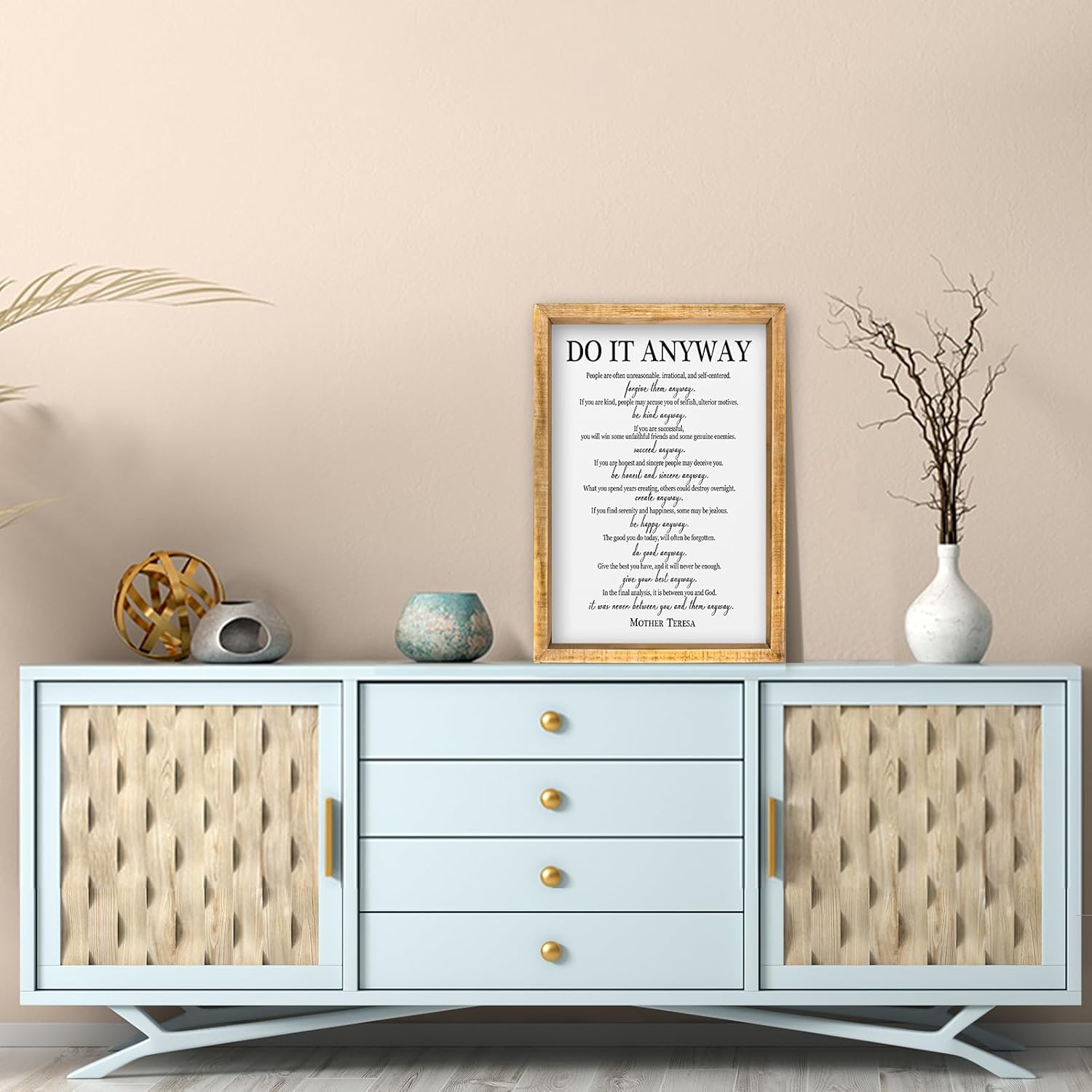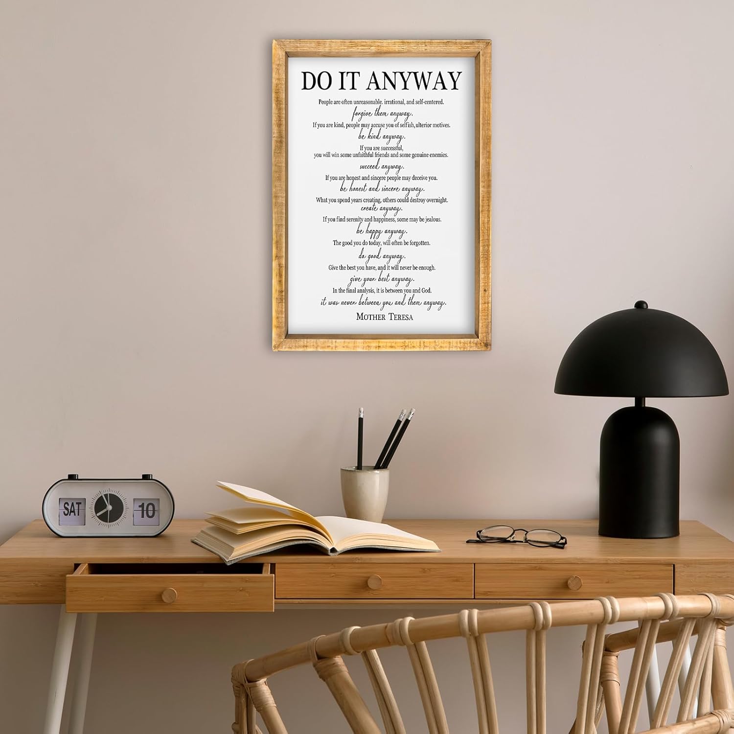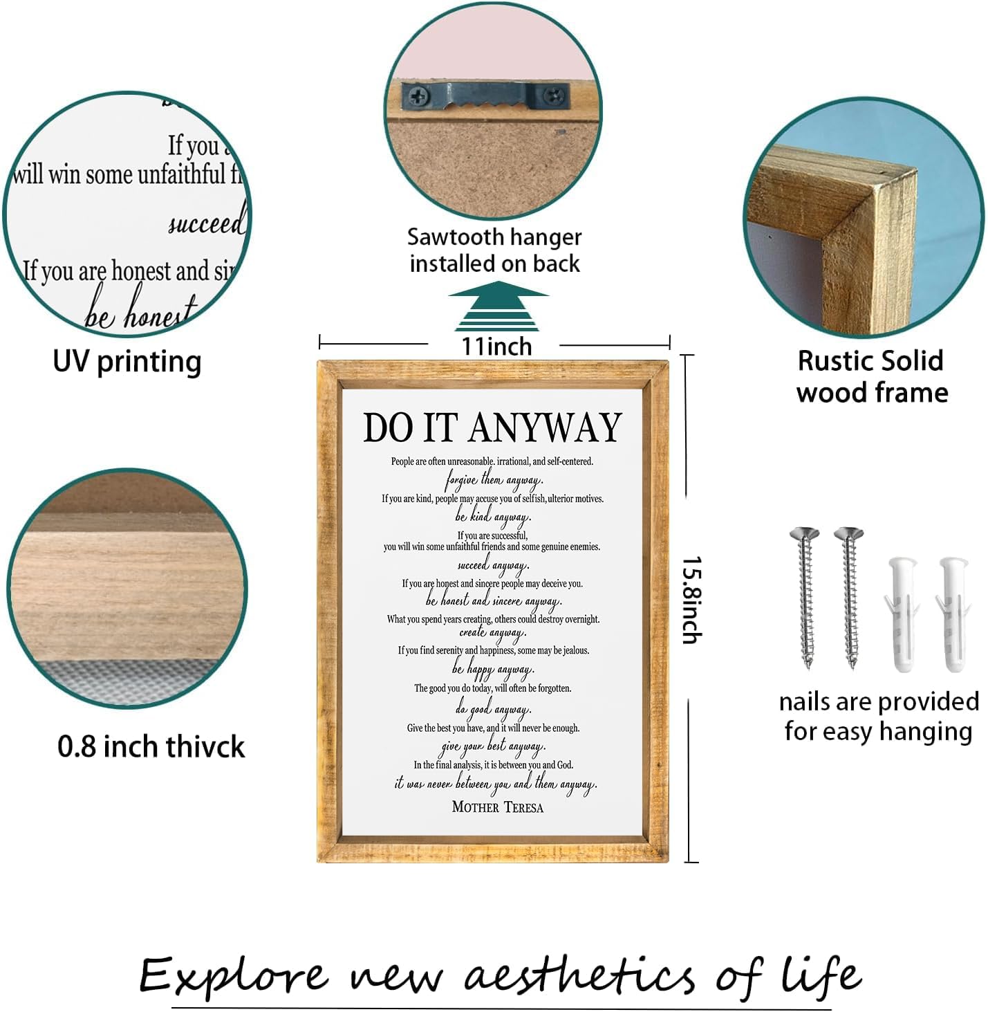 comurdyo Do It Anyway Wall Decor 16"x11" Mother Theresa Quotes Inspirational Sign Bible Verse Christian Motivational Modern Bedroom Vintage Wood Framed Farmhouse Wall Hanging Art (Wood)