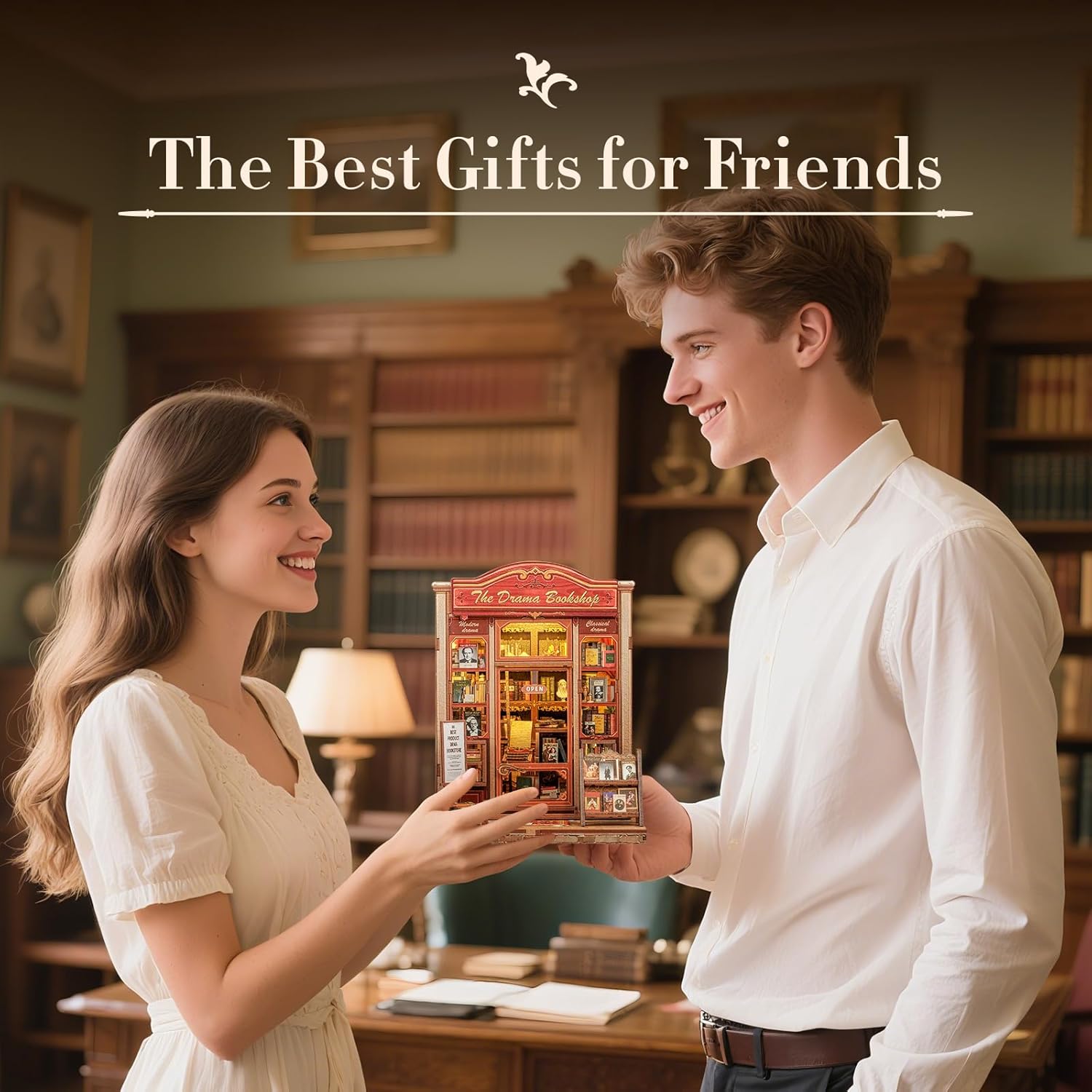 Fsolis Book Nook Kit, DIY Bookshelf Miniature Bookshelf Kit for Adults Tiny House 3D Puzzle Booknook Adult Craft Gifts for Women Teenagers Book Lovers (The Drama Bookshop)