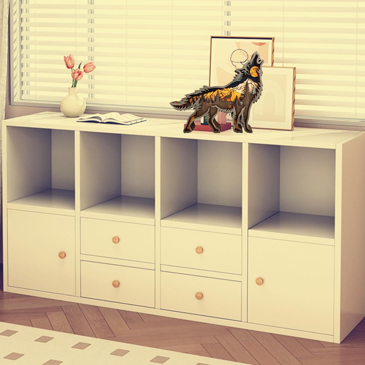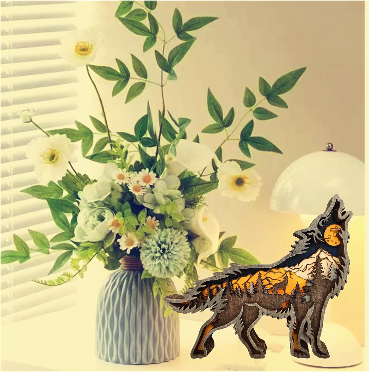 Forest Animal Desk Art Decor Wooden Farmhouse Table Decoration, Cabin Decor, Nursery Decor Mountain Decor for Bedroom Living Room(Wolf)