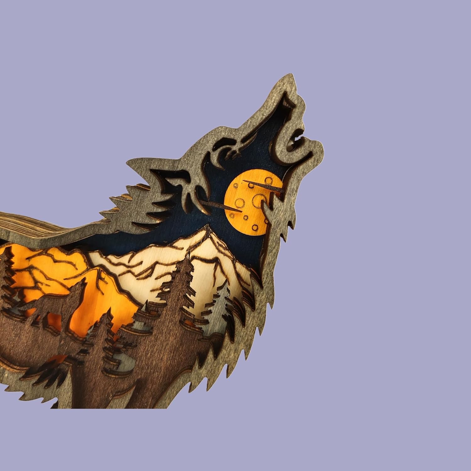 - About Design: The forest scenehas 5 layers of hollowing out, each layer is dyed in different colors, which makes the Mountain and Christmas Trees and animal a 3D scene.