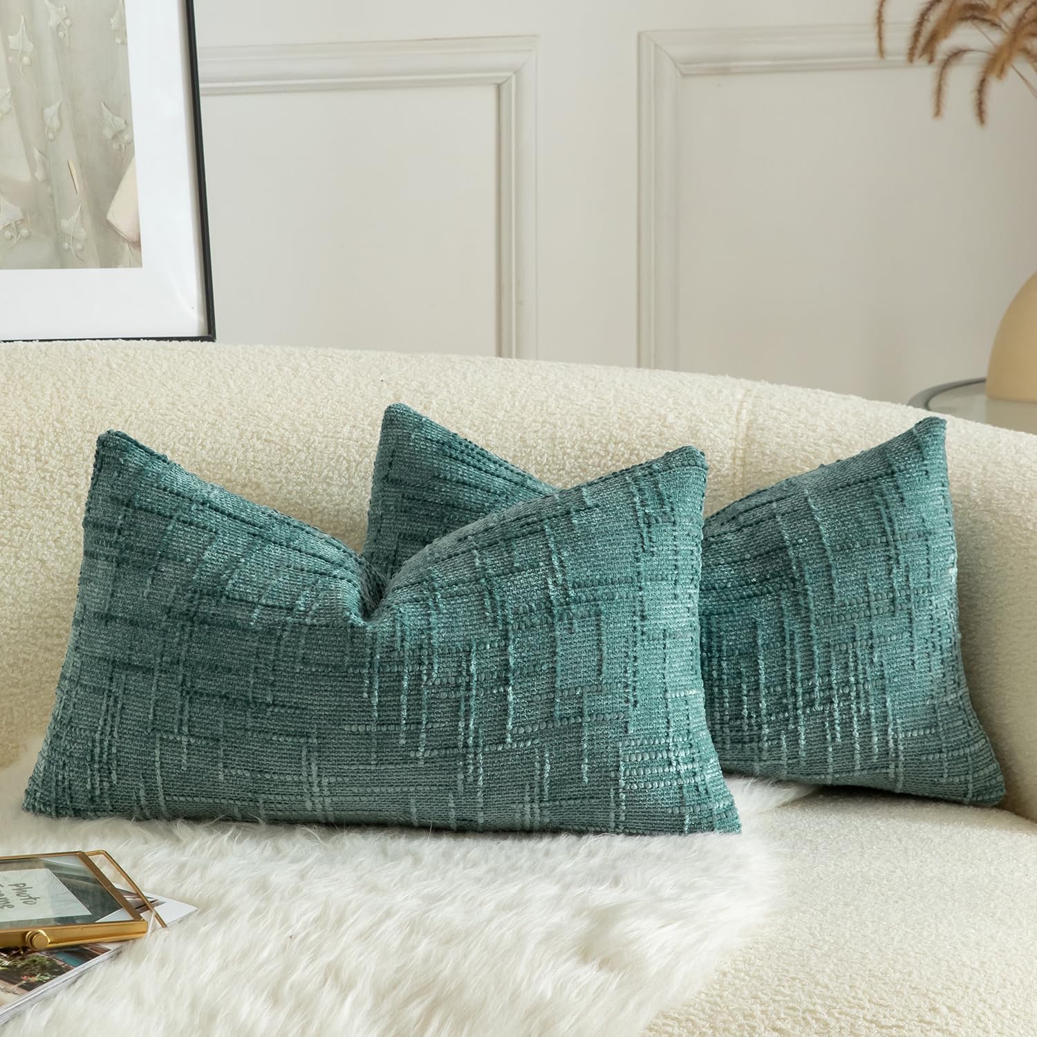 MANDIOO Pack of 2 Soft Chenille Textured Throw Pillow Covers Lumbar Accent Solid Decorative Cushion Cover Cozy Farmhouse Pillow Case for Couch Sofa Bed Living Room 12x20 Inch Teal
