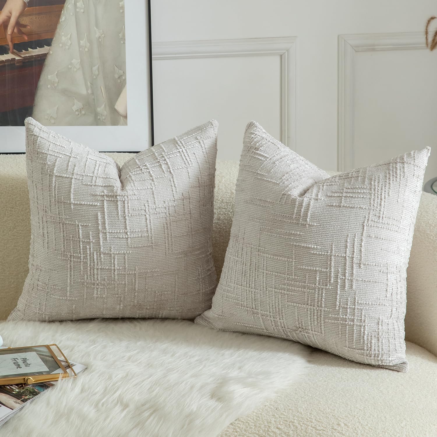 MANDIOO Pack of 2 Soft Chenille Textured Throw Pillow Covers Square Accent Solid Decorative Cushion Cover Cozy Farmhouse Pillow Case for Couch Sofa Bed Living Room 18x18 Inch Pearl Gray