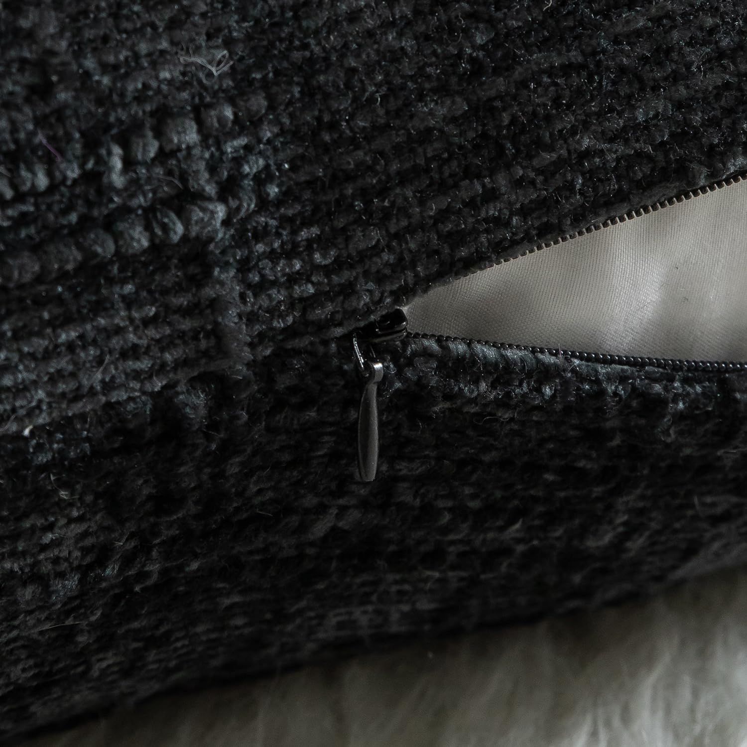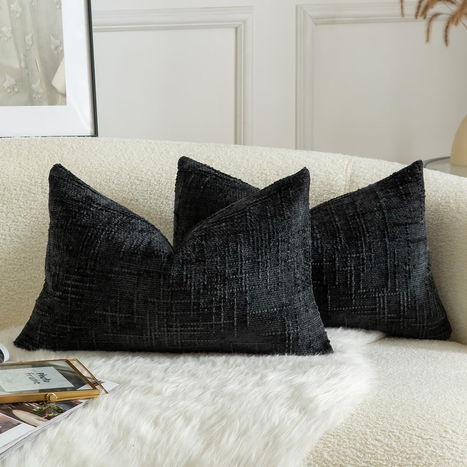 MANDIOO Pack of 2 Soft Chenille Textured Throw Pillow Covers Lumbar Accent Solid Decorative Cushion Cover Cozy Farmhouse Pillow Case for Couch Sofa Bed Living Room 16x24 Inch Black
