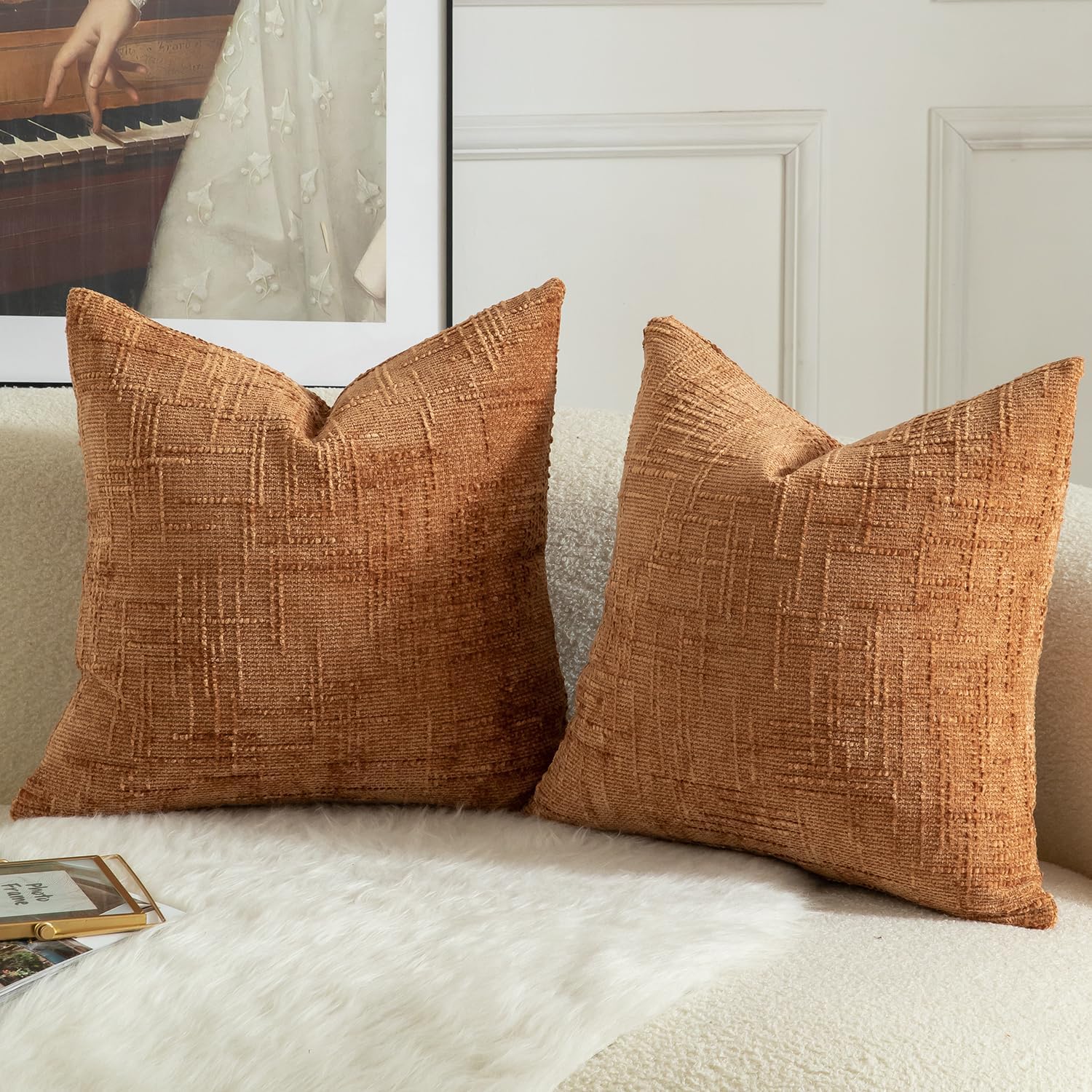 MANDIOO Pack of 2 Soft Chenille Textured Throw Pillow Covers Square Accent Solid Decorative Cushion Cover Cozy Farmhouse Pillow Case for Couch Sofa Bed Living Room 24x24 Inch Burnt Orange