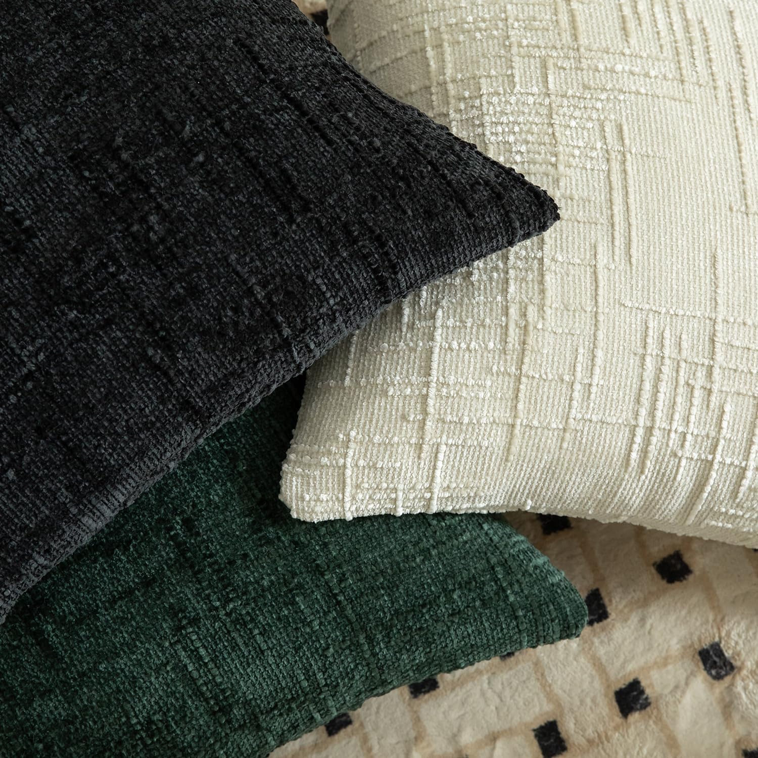 MANDIOO Pack of 2 Soft Chenille Textured Throw Pillow Covers Square Accent Solid Decorative Cushion Cover Cozy Farmhouse Pillow Case for Couch Sofa Bed Living Room 18x18 Inch Black