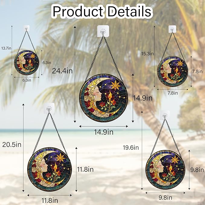 - Sun Catchers Indoor Window : This stain glass window hanging captivates with its vibrant and rich tones. Stain glass window hanging has a double-sided light transmission, it come to life when illuminated by natural light, infusing your home with happiness.
