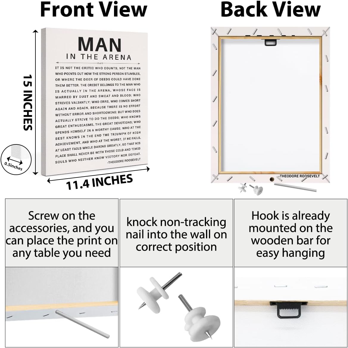 Inspirational Wall Art Office Decor The Man in the Arena Motivational Positive Quote Canvas Print Gift for Men Framed Canvas Wall Decor Positive Affirmations Wall Art for Bedroom Study Gym Room