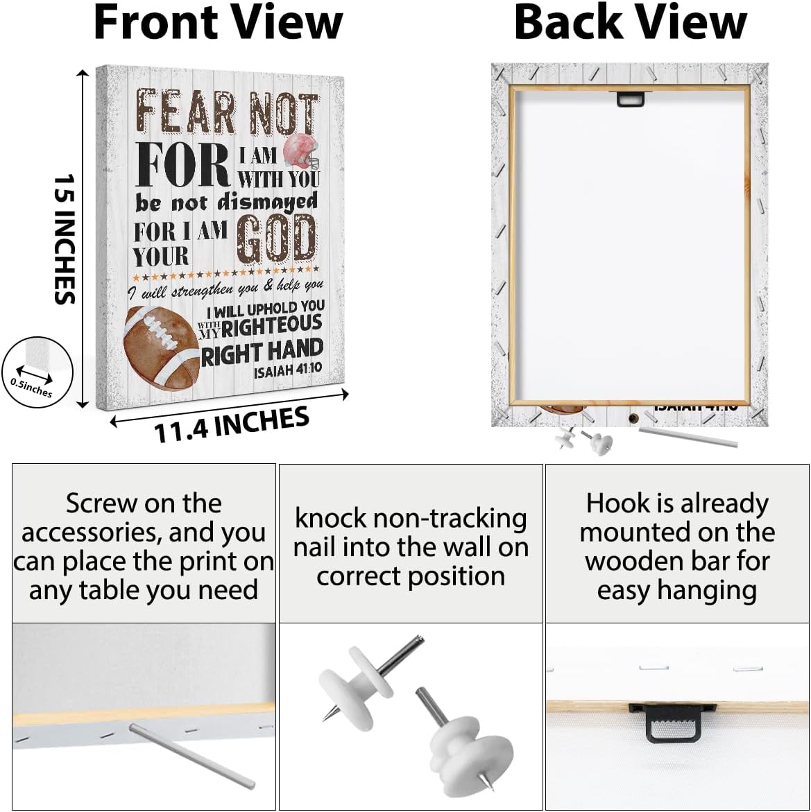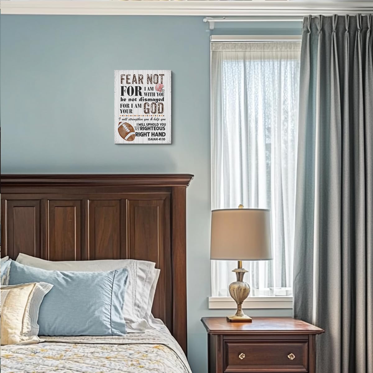 HZMLYDJ Christian Art Boys Bedroom Decor - Bible Verse Wall Decor for Kids - Scripture Wall Art - Christian Gifts - Rustic Kids Room Decor - Football Room Decor - Religious Quotes for Men, Man cave