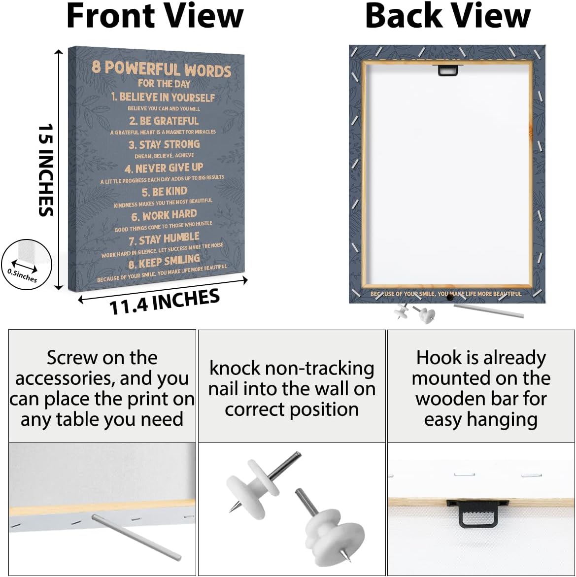 Inspirational Motivational Posters 8 Powerful Words Motivational Quotes Poster Print Phrase Wall Art Positive Quotes, Positive Affirmations Wall Art Decor for Bedroom Office Classroom Study Gym Room