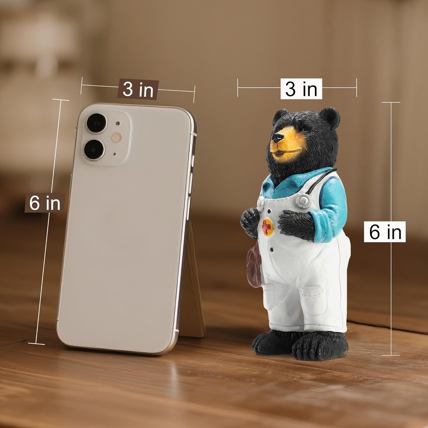 Black Bear Figurine Home Decor Bear Statue,for Office, Desk, and Shelf Decoration,Doctor Themed Birthday Gifts