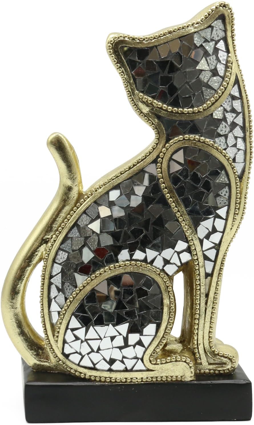 - 【Sturdy Black Base】:The statue comes with a sleek black base that enhances its stability and complements the gold and silver mosaic design, making it a visually appealing addition to any space