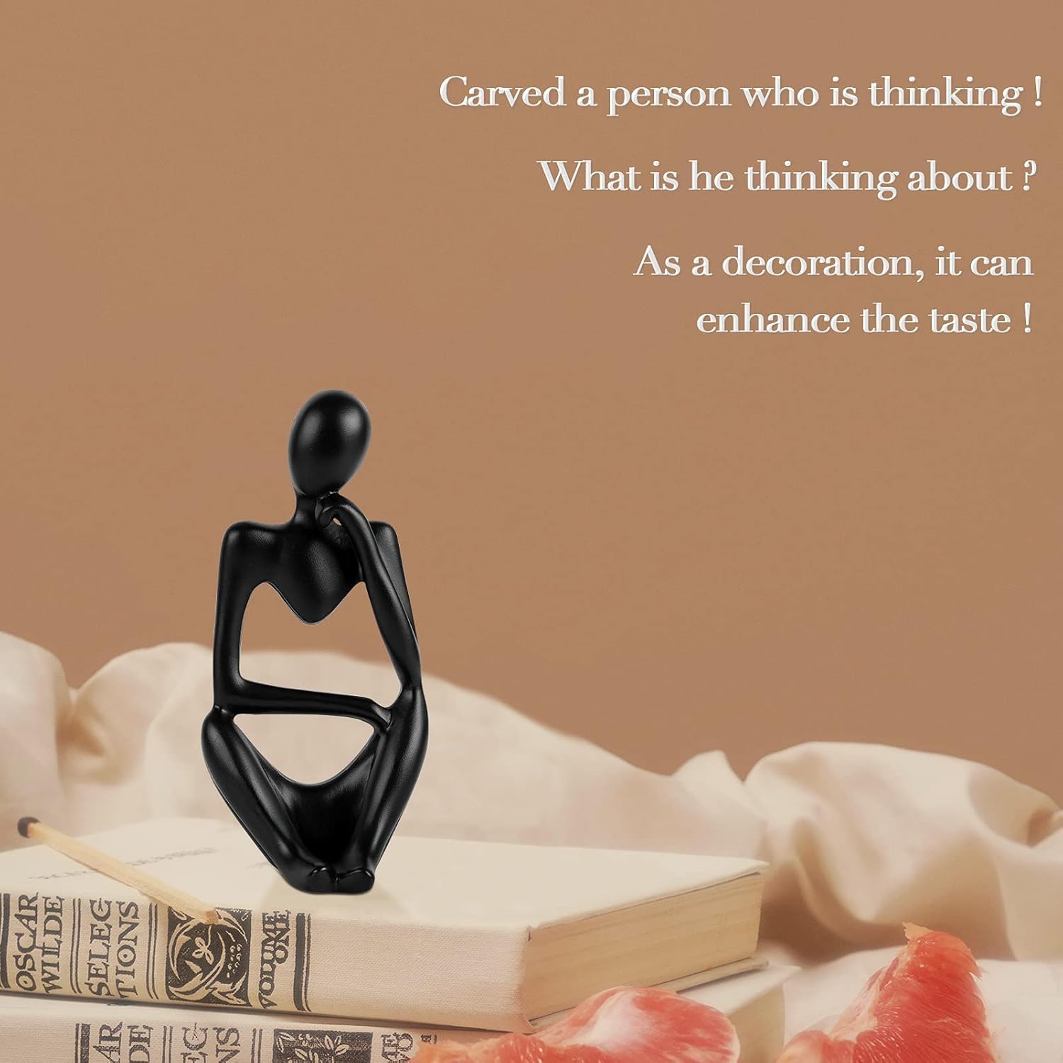 Creative Resin Thinker Minimal Abstract Art Sculpture Statue Figurines Home Office Bookshelf Desktop Decor (Black, Right, Small)