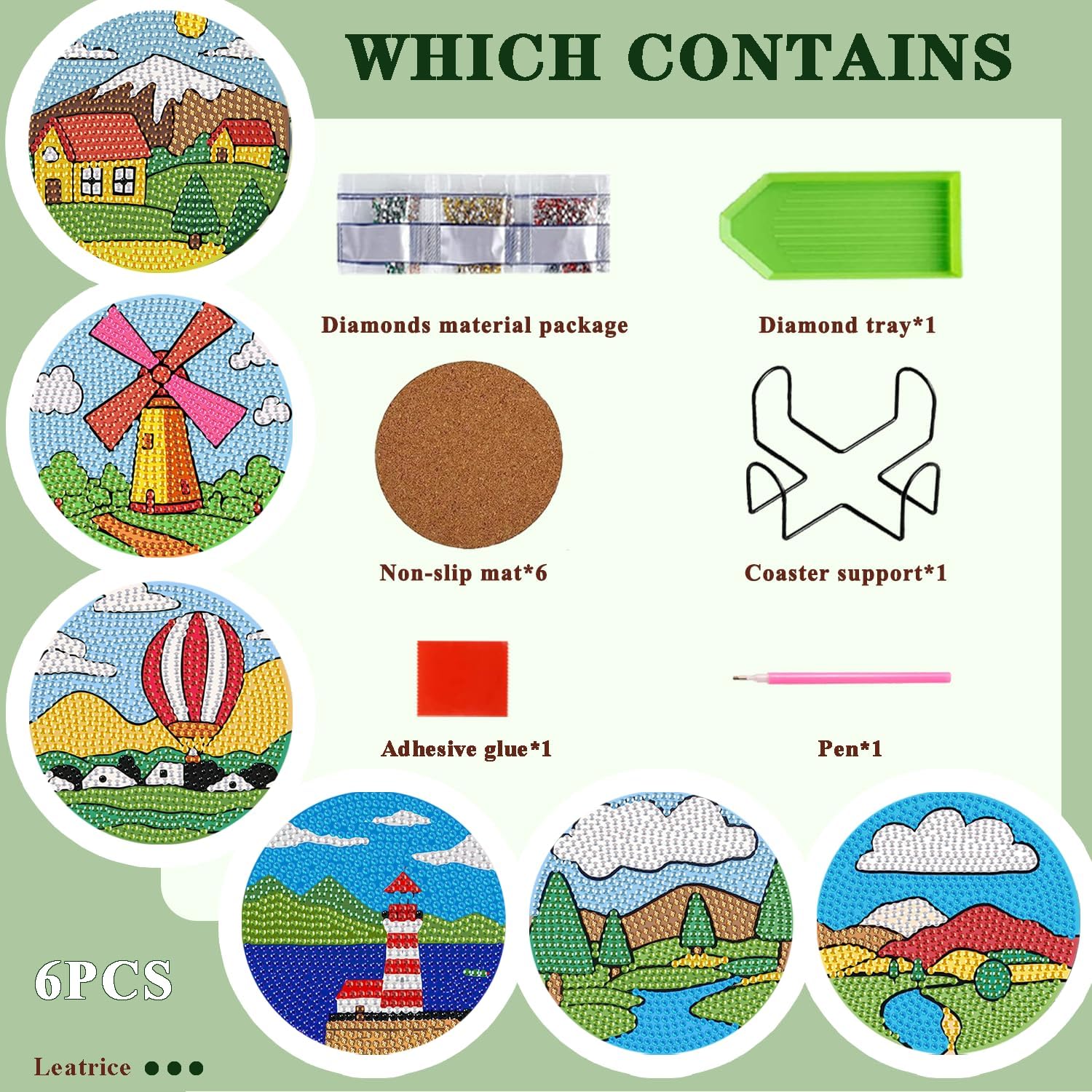 - 5d Diamond Art Kits for Adults: This 6 pcs of small diamond painting kits for adults includes 6 pcs round diamond painting coasters, diamond painting tools: 1 coaster holder,1 diamond art pen, diamond art glue and plastic trays. For each gem art for adults we'll provide more diamond dots for adults than you need the diamond painting kits allows you to work on your paint with diamonds as much art as you want