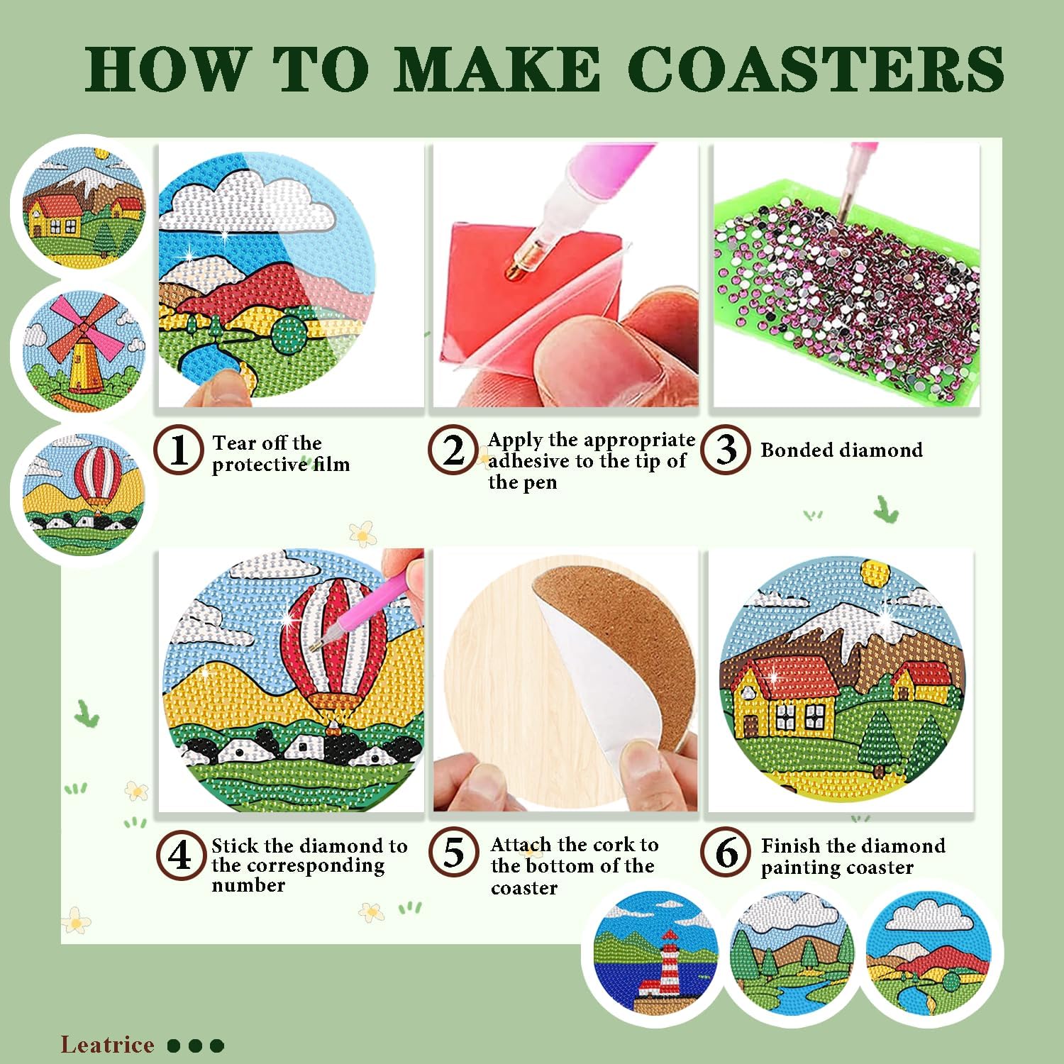 - Creative Design: Our Cute Diamond dot coasters have been carefully designed to provide each art lover with their favorite style, scenery, animals, plants, flower, and simplicity, making Diamond Art coasters all lovely and charming works of art. Dimond painting coasters for kids sparkle that you can enjoy the satisfaction of creating your own artwork, your eye for beauty, and build focus and patience in a rewarding manner