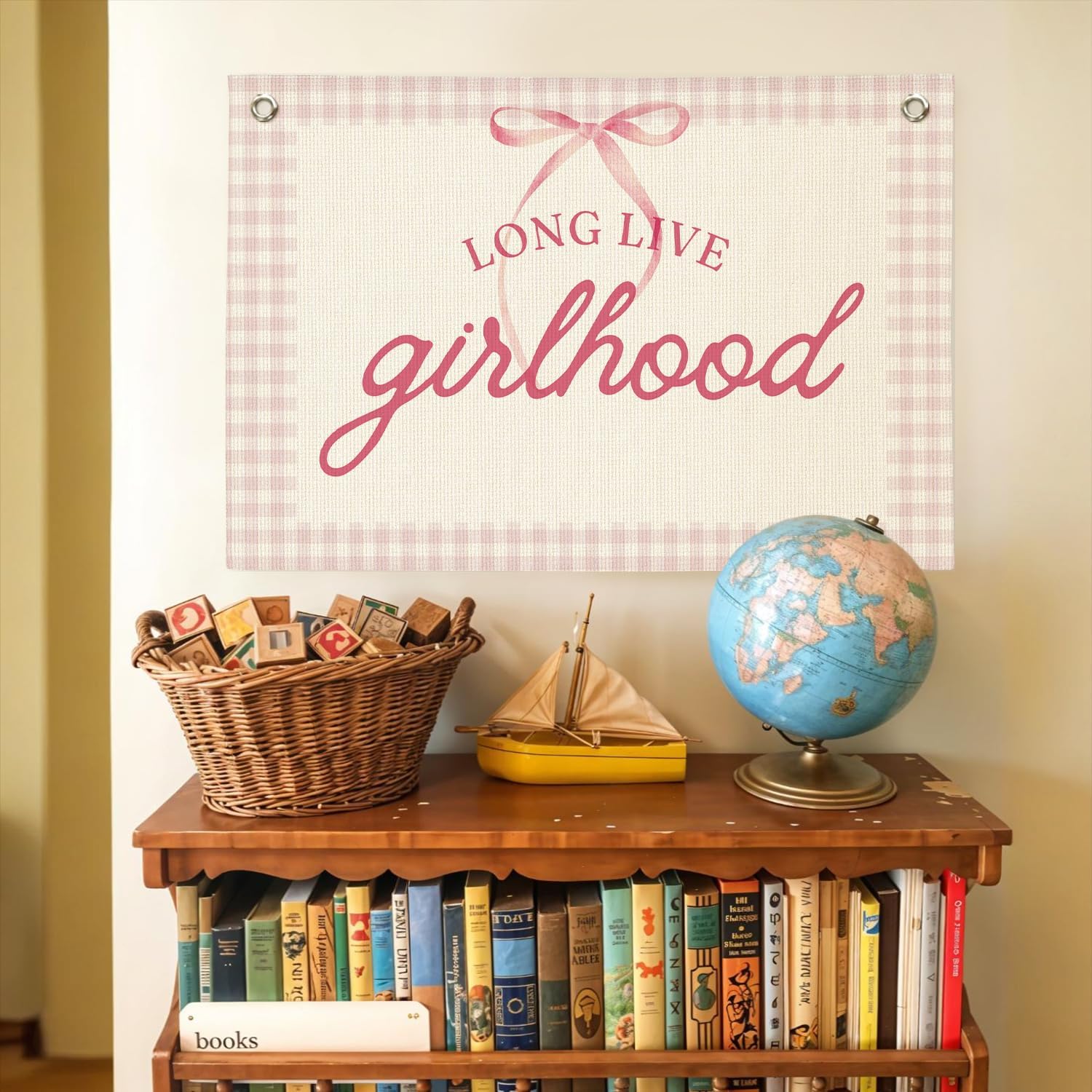 Girl Room Decor - Long Live Girlhood Linen Banner,Bow Nursery Decor for Girl,Swan Decor Wall Hanging for Nursery, Playroom, Kids Bedroom and Aesthetic Room Decor 30x20 Inch