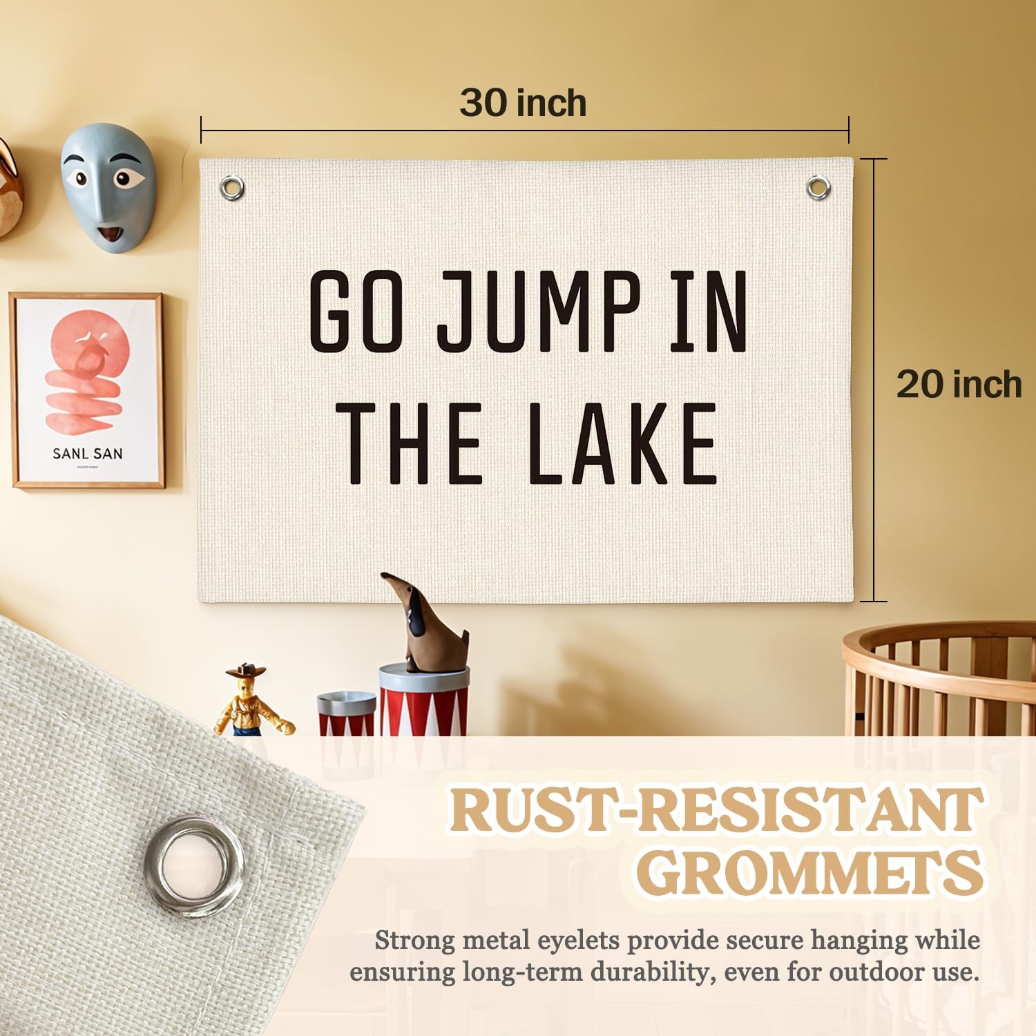 Lake House Decor Canvas Banner,Lake House Gifts,Go Jump in The Lake Banner - Surf Decor Wall Hanging Banner Flag for Cabin Bedroom Porch Home 30x20 Inch