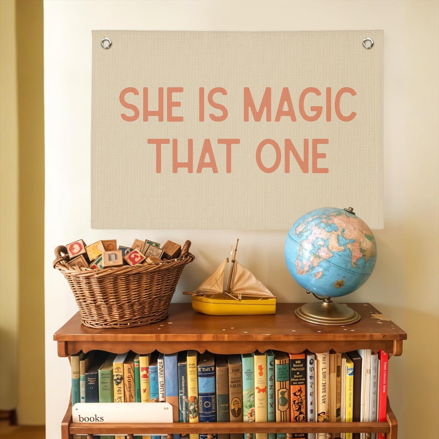 Girls Room Decor,She Is Magic That One Linen Canvas Banner– Inspirational Wall Art for Nursery Kids,Girl Room Decor – 30x20 Inch