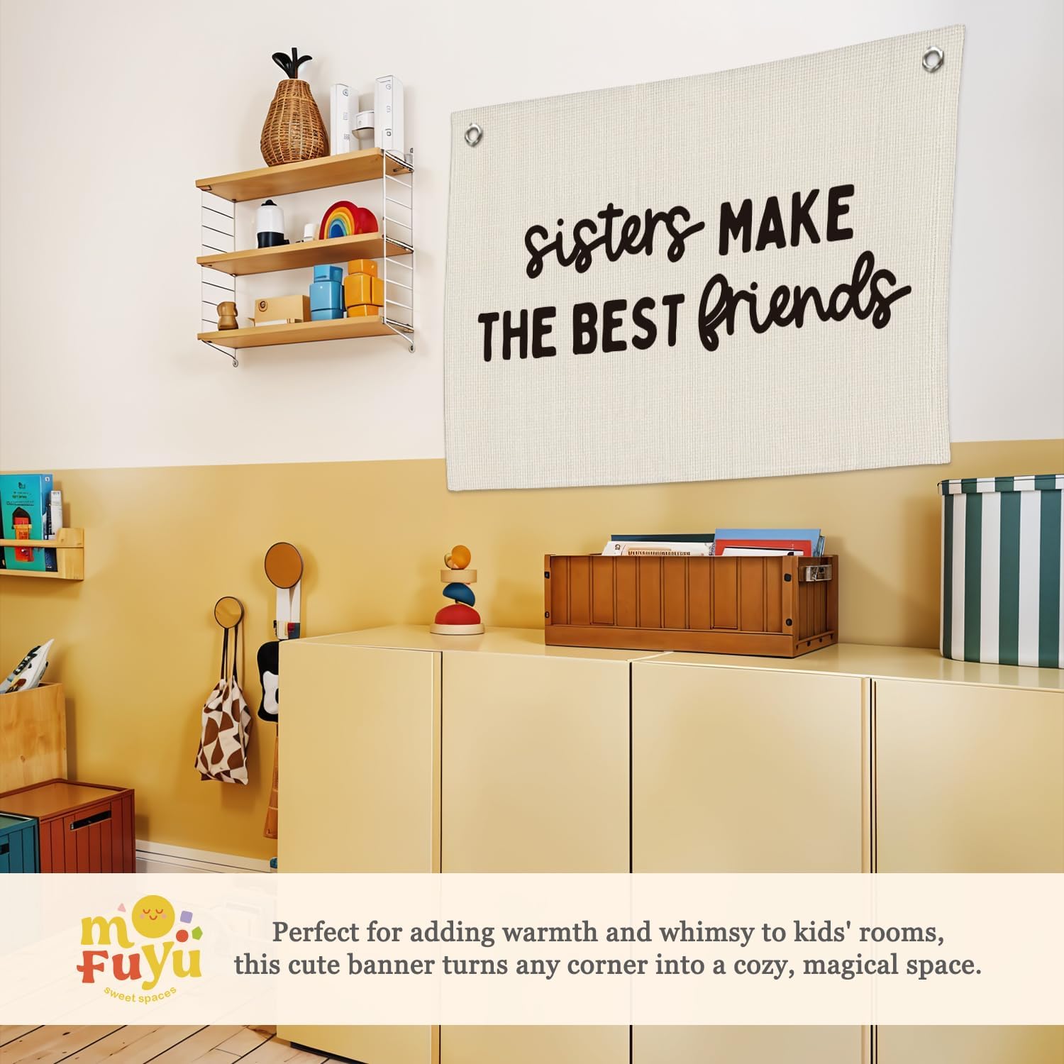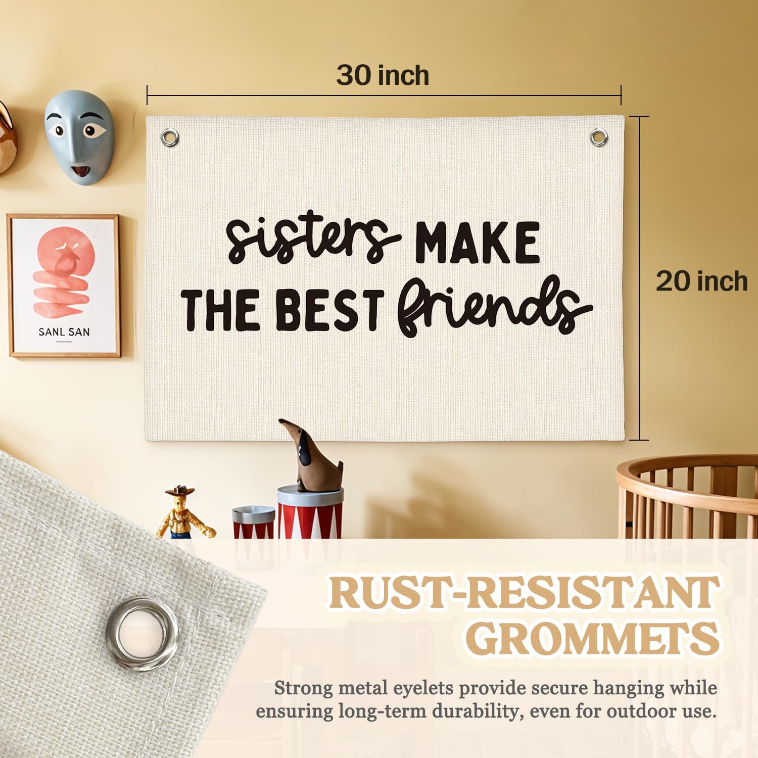 Girl Room Decor,Sisters Make The Best Friends,Bedroom Playroom Wall Art Decor,Girl Nursery Decor Canvas Banner,Sister Room Sign Linen Canvas Banner 30x20 Inch