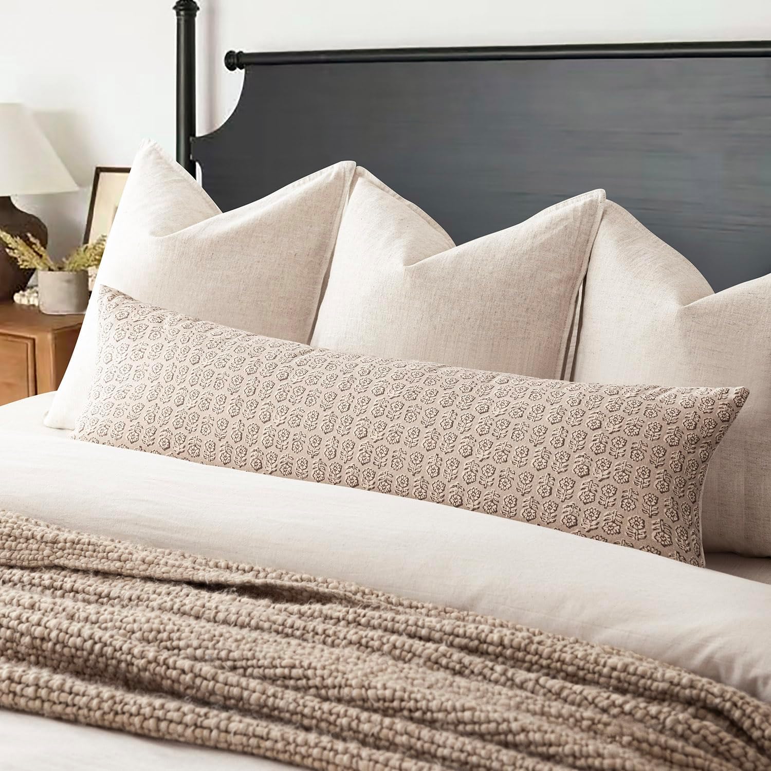 Foindtower Set of 2 Decorative Long Body Lumbar Throw Pillow Covers Vintage Accent Farmhouse Cushion Covers Neutral Home Decor for Sofa Couch Chair Bedroom Living Room,14×36 Inch,Ivory Beige