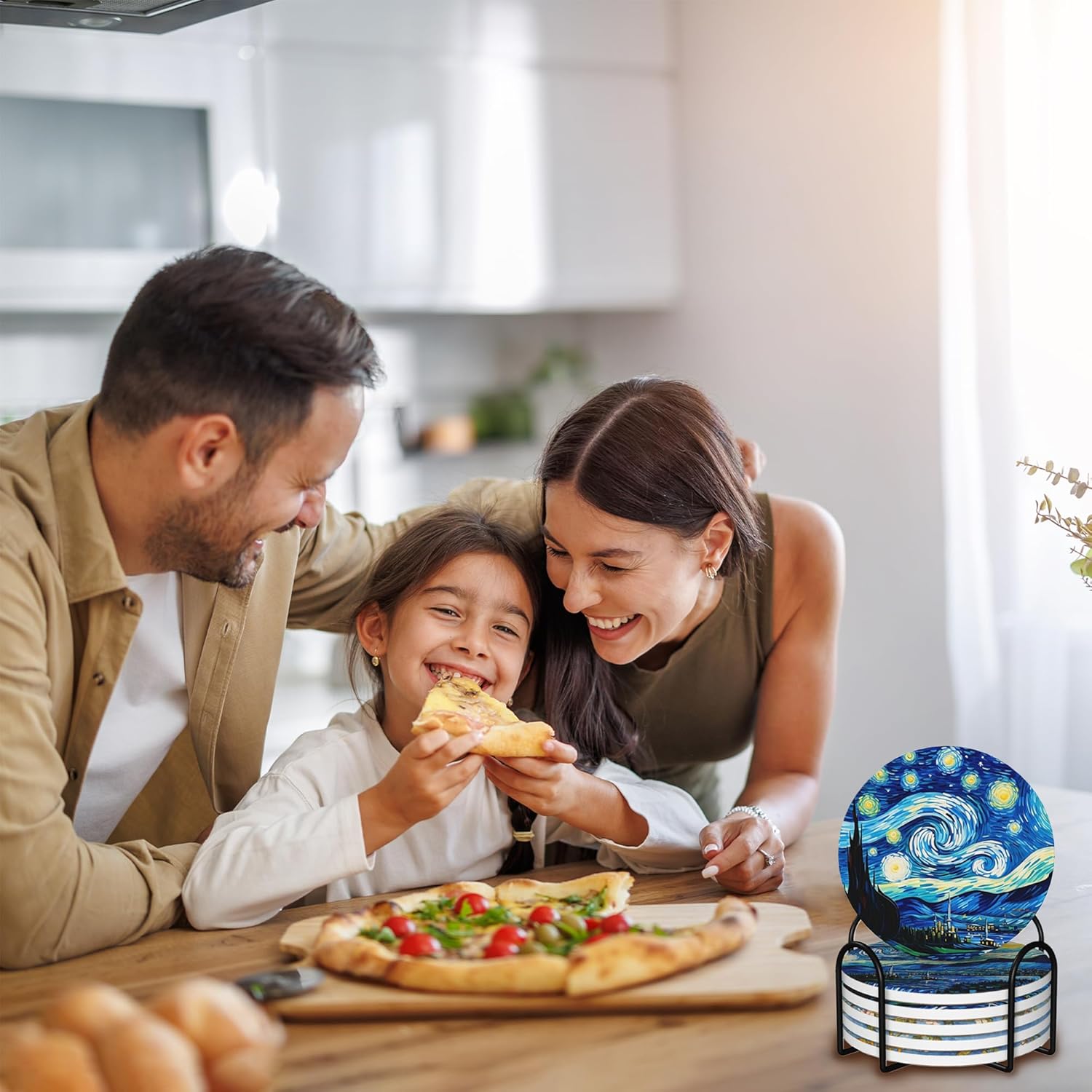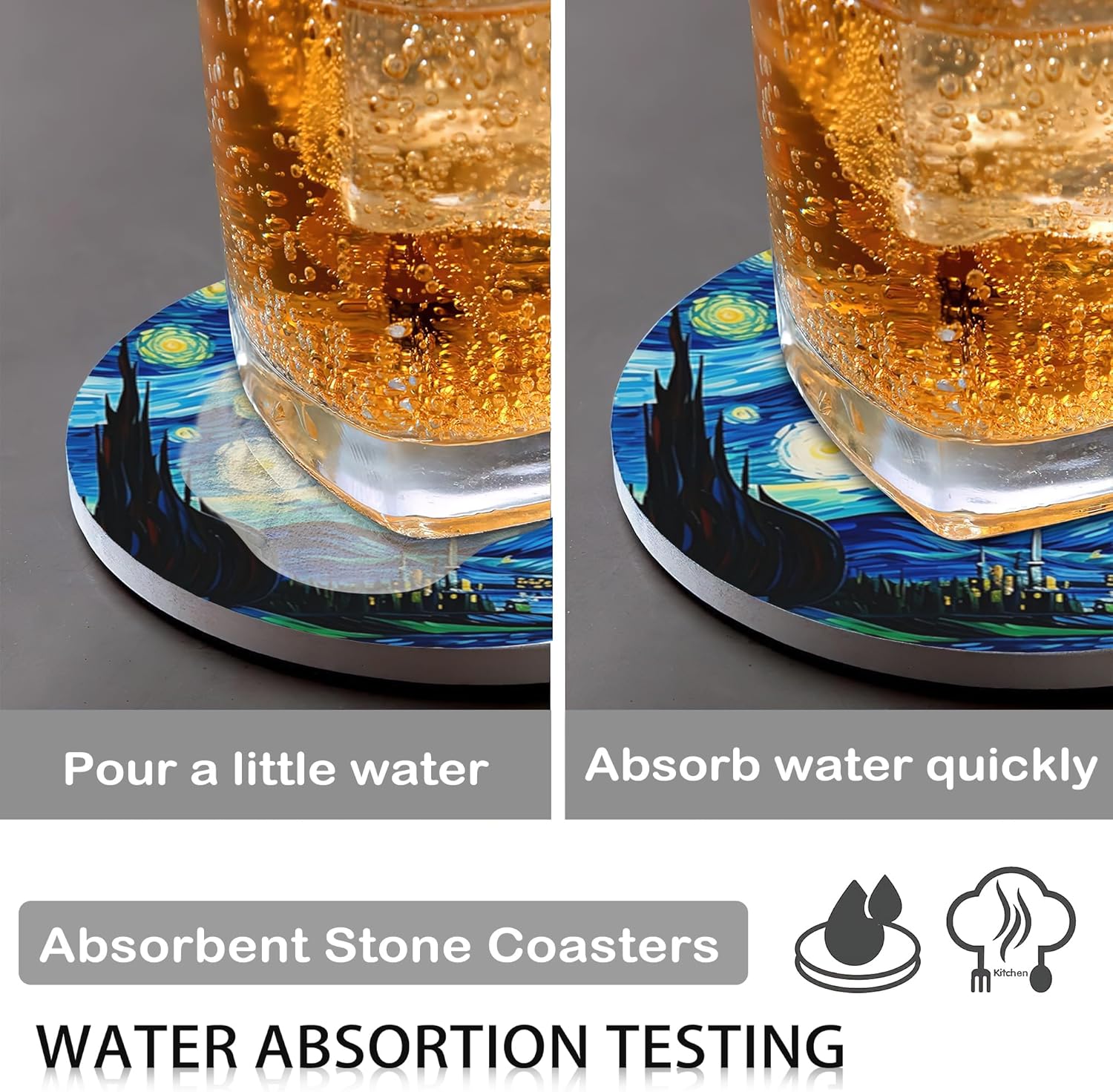 Coasters for Drinks Absorbent with Holder,Abstract Starry Sky Sets of 6 Durable Cup Coaster for Coffee Table Protection,Great Housewarming Birthday Gifts,Home Decor
