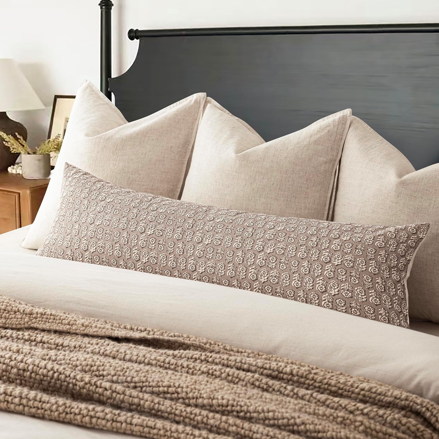 Foindtower Set of 2 Decorative Floral Body Lumbar Throw Pillow Covers Neutral Modern Farmhouse Cushion Covers Vintage Home Decor for Sofa Couch Chair Bedroom Living Room,14×36 Inch,Tan Taupe