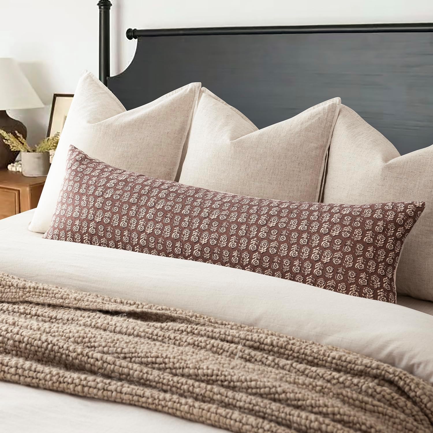 Foindtower Set of 2 Decorative Vintage Long Lumbar Throw Pillow Covers Neutral Modern Farmhouse Cushion Covers Floral Home Decor for Sofa Couch Chair Bedroom Living Room,14×36 Inch,Wine Red