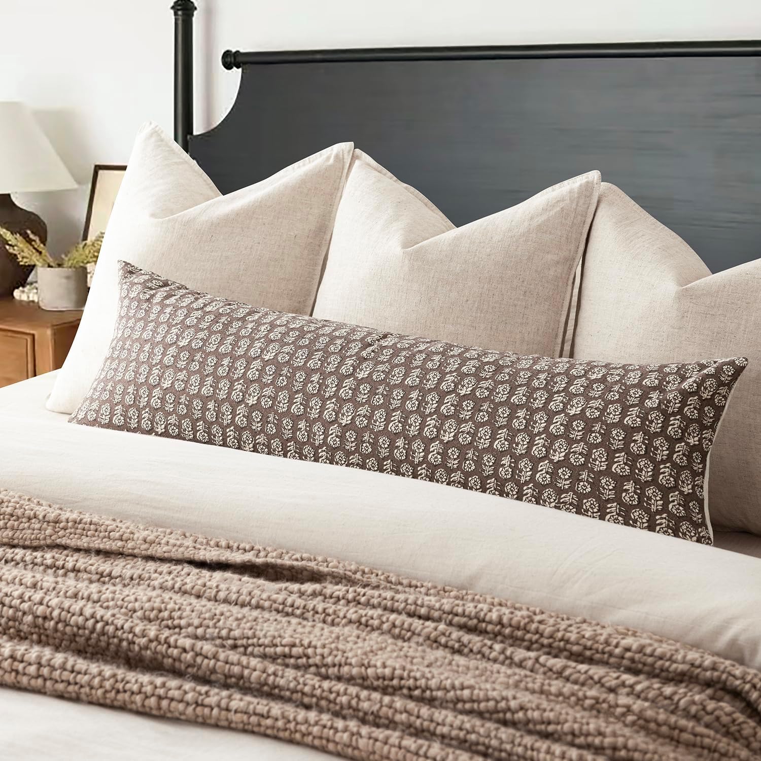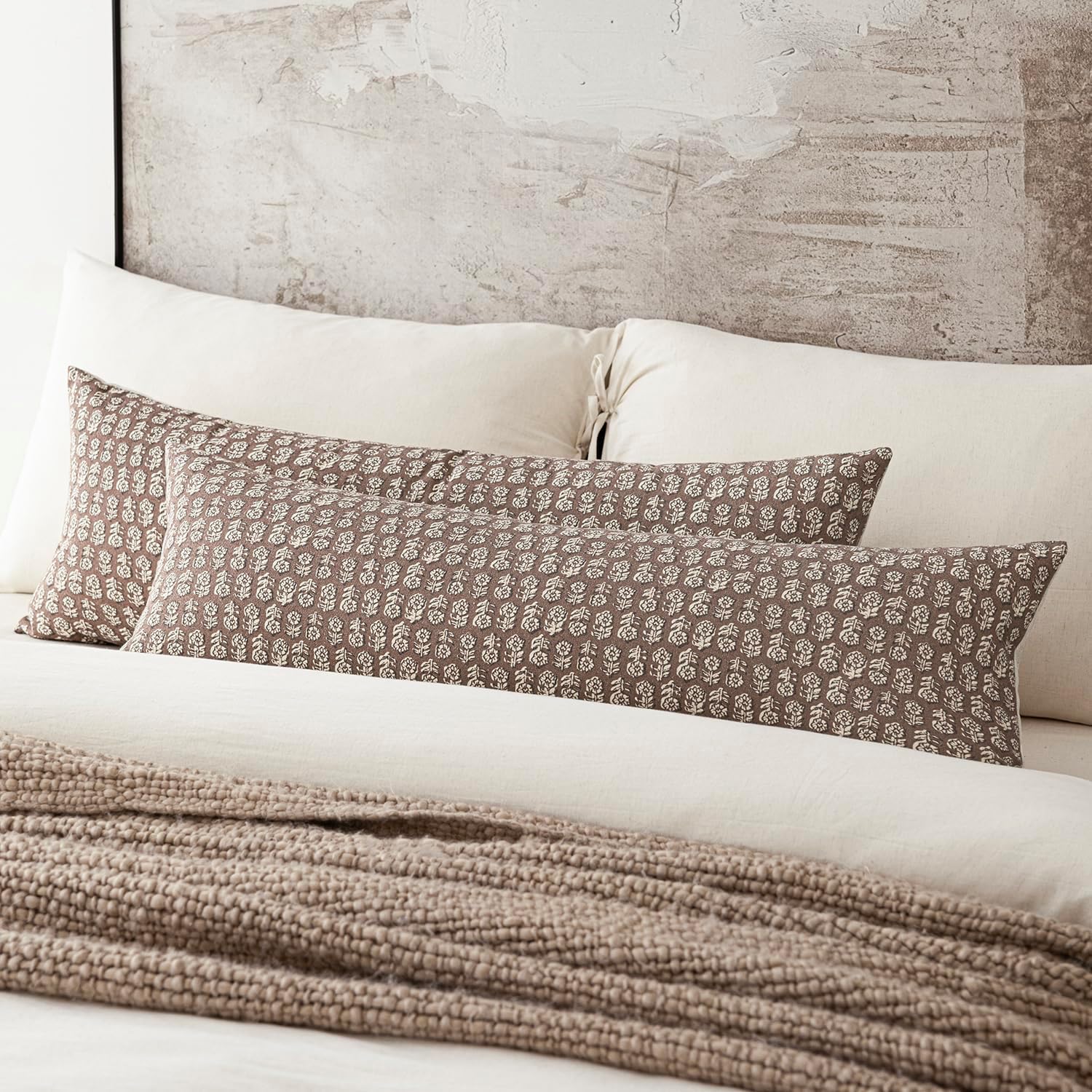 Foindtower Set of 2 Decorative Floral Long Body Lumbar Throw Pillow Covers Vintage Accent Farmhouse Cushion Covers Neutral Home Decor for Sofa Couch Chair Bedroom Living Room,14×36 Inch,Brown
