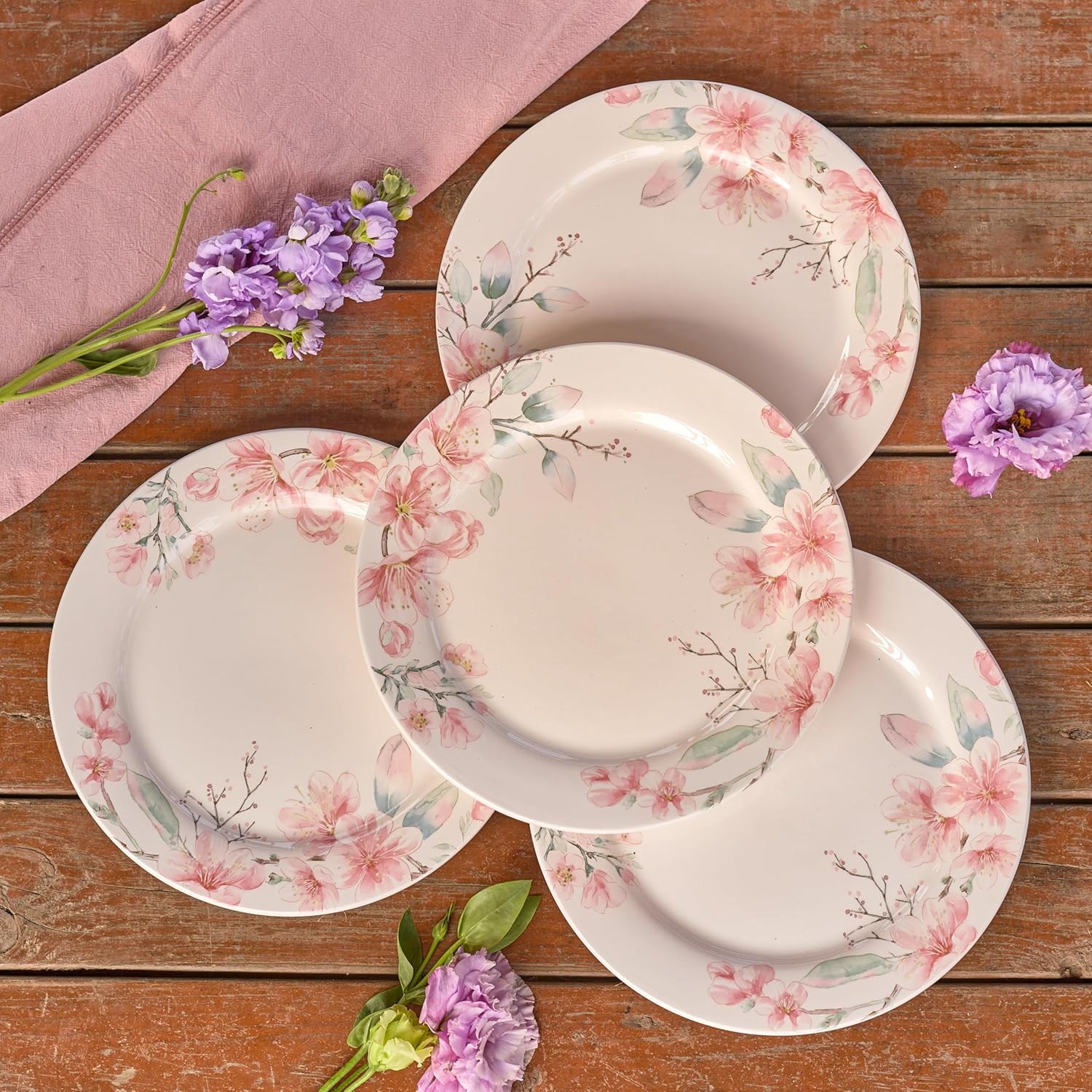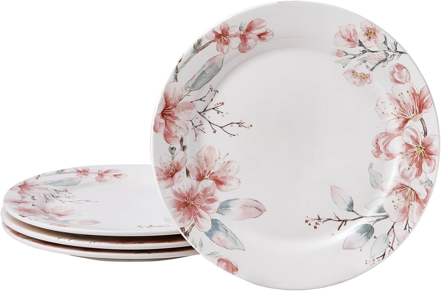 Bico Spring Sakura Dinner Plates Set of 4, 11 Inch Large Ceramic Plates for Pasta, Steak, Stylish Serving Dishes, Microwave and Dishwasher Safe, Gift for Housewarming and Thanksgiving