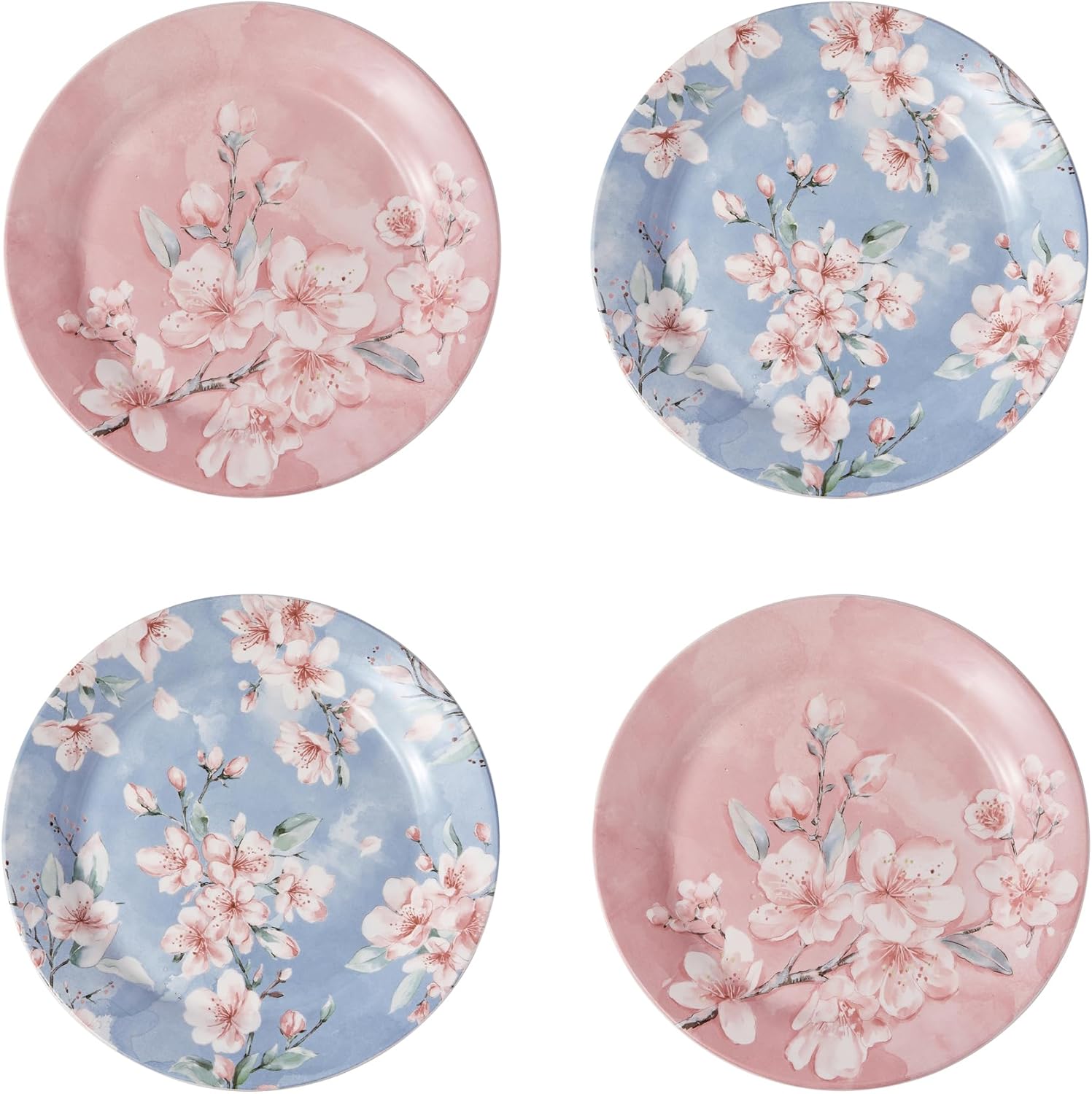 Bico Spring Sakura Salad Plates Set of 4, 8.75 Inch Ceramic Dessert Plates for Salad, Appetizer, Side Dishes, Microwave and Dishwasher Safe, Gift for Housewarming and Thanksgiving