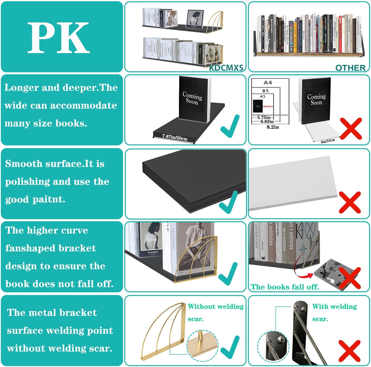 - Prevents Book Sliding & Falling System—Engineered with a high curved bracket retention system, our black floating book shelves for wall 36 inch securely keep books upright and organized—no more tilted stacks or scattered falls. Unlike basic triangular brackets of 36 inch black floating bookshelves that compromise center-of-gravity stability, our ergonomic fan-shaped design locks books in place.