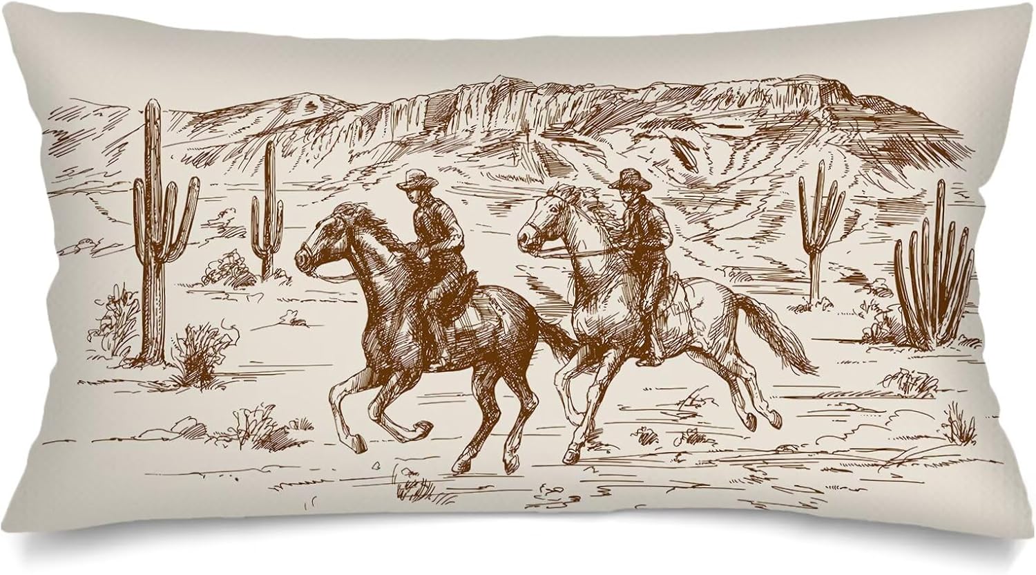 Cowboy Long Pillow Cases King Size Pillow Covers with Zipper,Country Theme of American Wild West Desert Decorative Cushion Case Western Pillows Cover Farmhouse Pillowcase for Bed,Sleeping,20"x40"