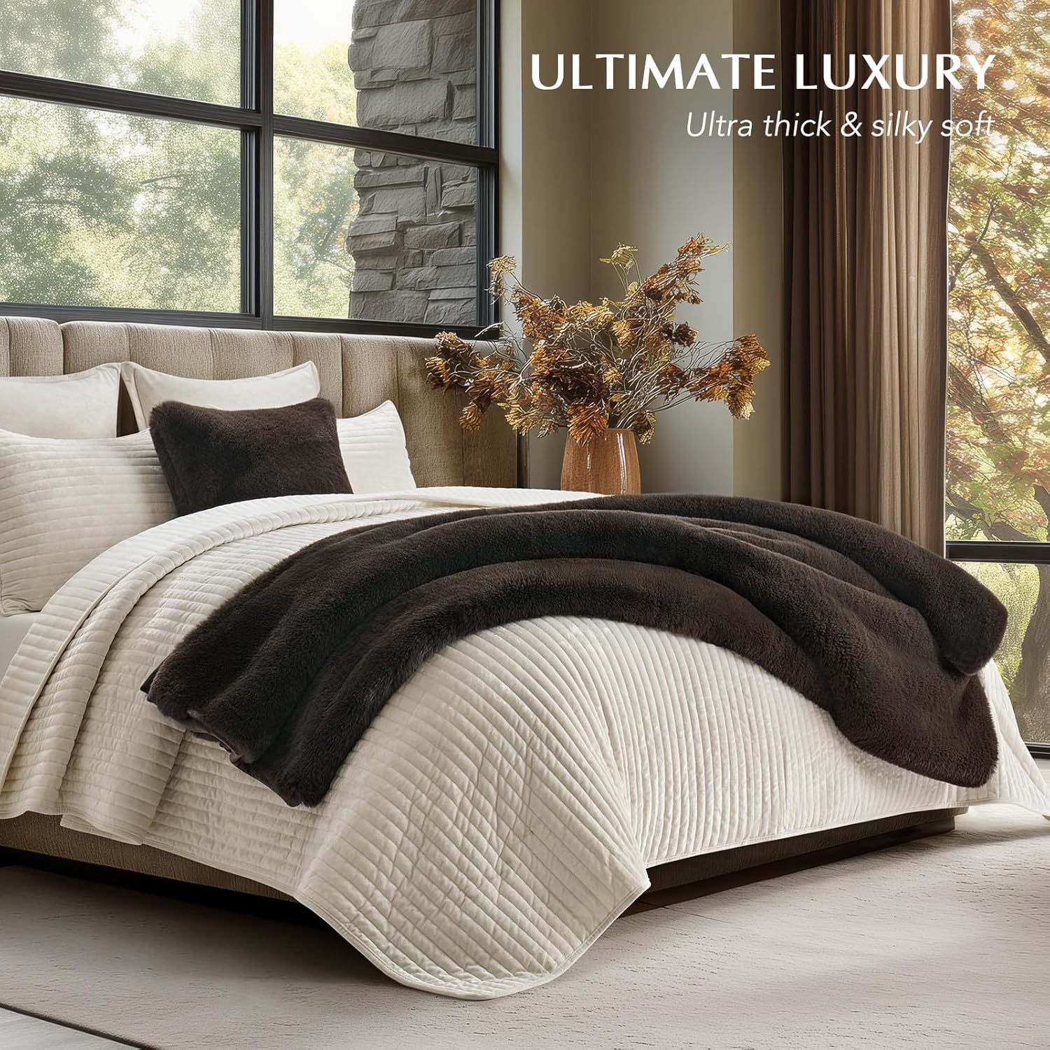 EVERGRACEHOME Luxury Soft Faux Chinchilla Fur Throw Blanket for Couch, Warm Thick Heavy Winter Throw Blanket 1220GSM for Bed, Fluffy Cozy Mink Blanket with Reversible Velvet, Espresso Mink, 60"x80"
