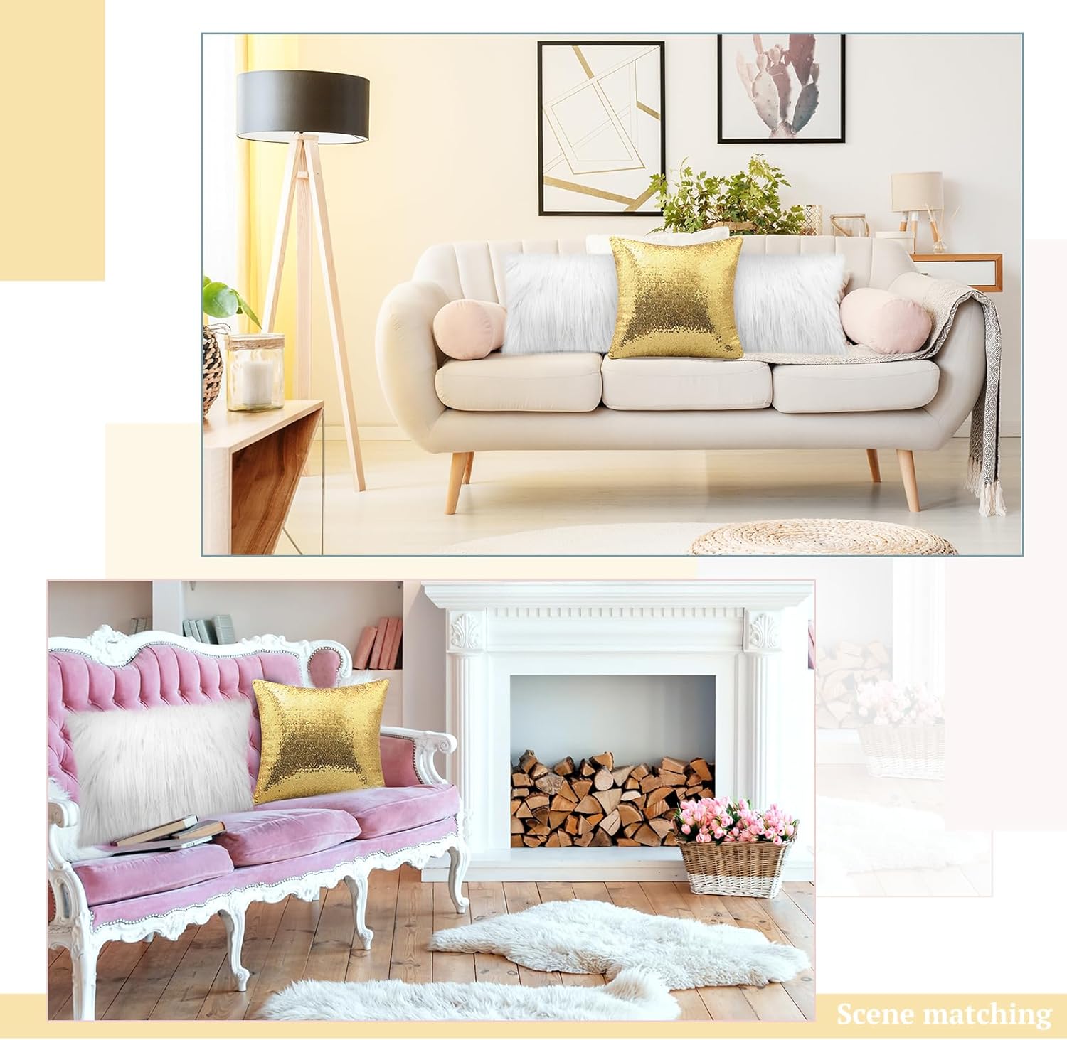 - Well made: the glitter decorative pillowcases are made of opaque sequin fabric, which is satin fabric embroidered with 3.0 mm shiny sequins, the sequins are also glitter and shiny; Faux fur throw pillow covers are made from polyester, soft and comfortable to touch, while possessing both decorative effect and practicability