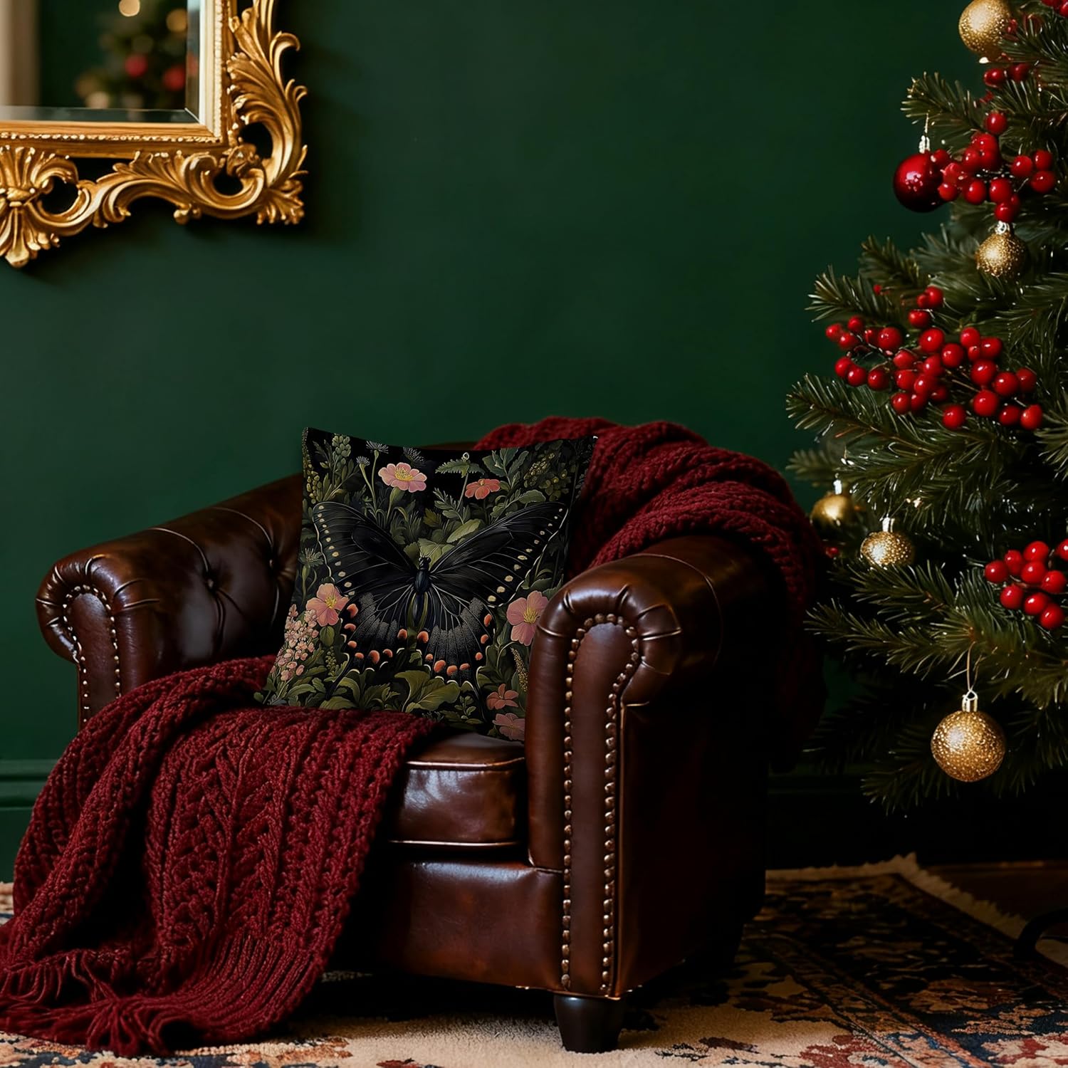 Floral Black Butterfly Pillow Covers 18x18, Dark Cottagecore Wildflower Botanical Moth Decorative Throw Pillow Covers for Bedroom Living Room Home, Butterfly Room Decor