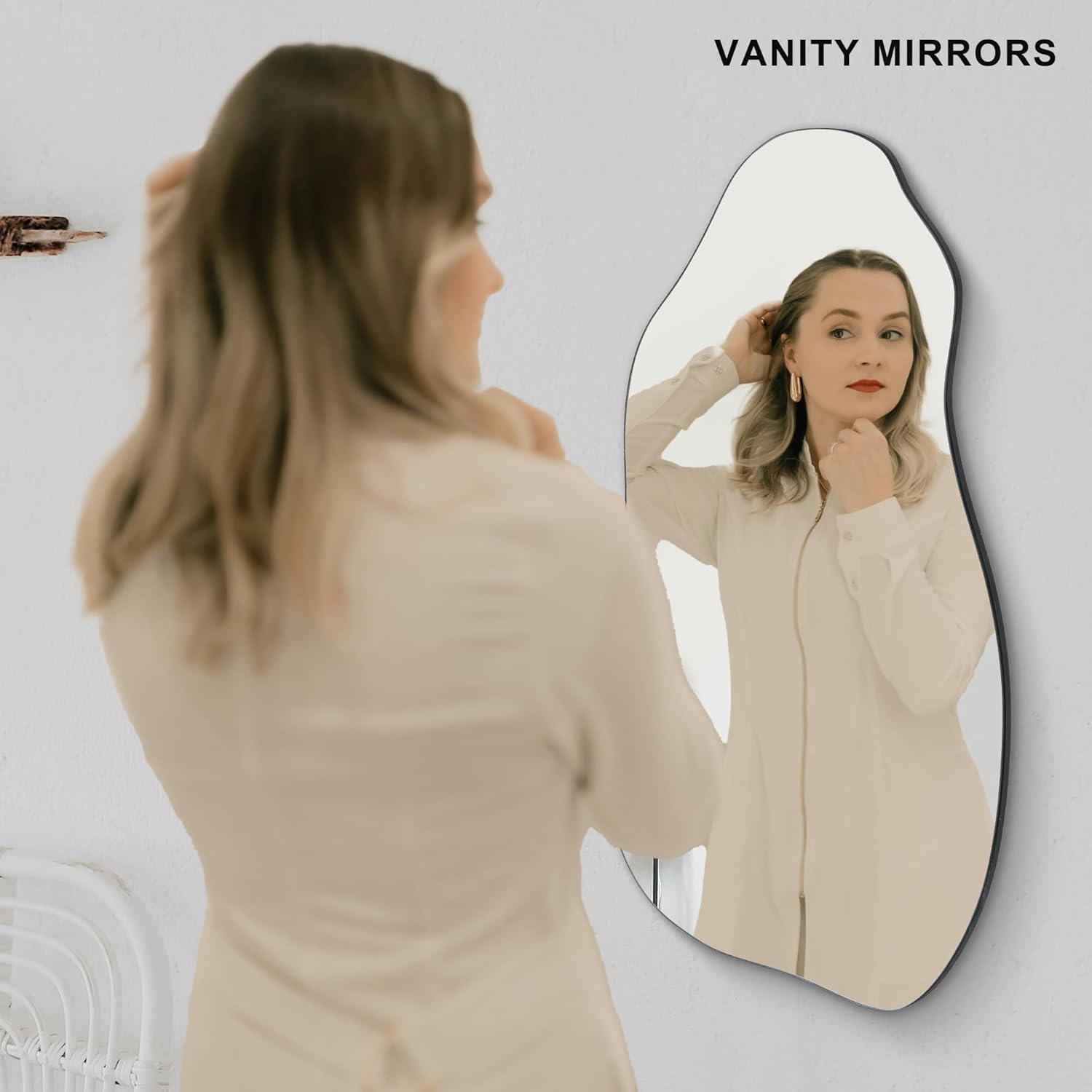 - 【Clear Reflection | Durable & Safe】Made from premium quality HD float glass, this irregular wall mirror is resistant to oxidation and rust, while providing clear, distortion-free images, enhancing lighting and true colors in your space. The explosion-proof glass with smooth, burr-free edges to keep you and your family safe