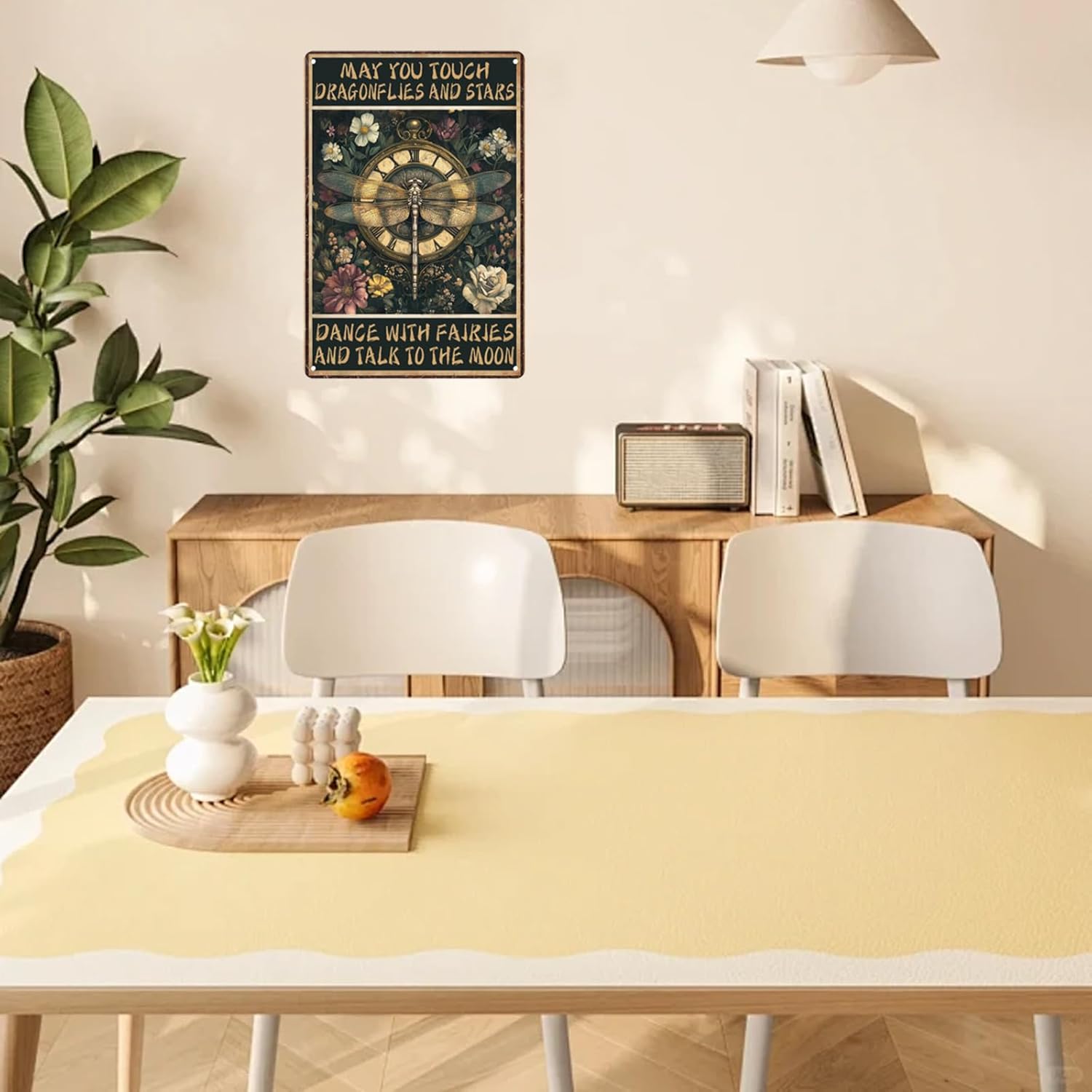 - Funny Sign: vintage tin signs with a funny phrase: ‘May You Touch Dragonflies And Stars’, the language is simple and humorous, every time you see it can make you smile, not only suitable for you to decorate your own space, but also suitable to give to friends who like humour