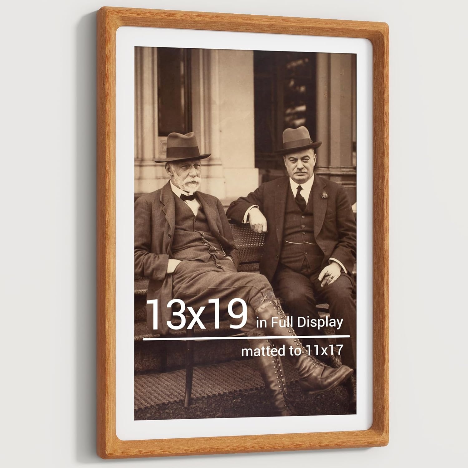 Heimlove 13x19 Picture Frames Natural Teak,Original Wood Hand Make Crafted Certificate Frame with Mat to 11x17 Graduation Picture Display,Family Picture,Wedding Picture,Diploma,Photo Wall Mounted
