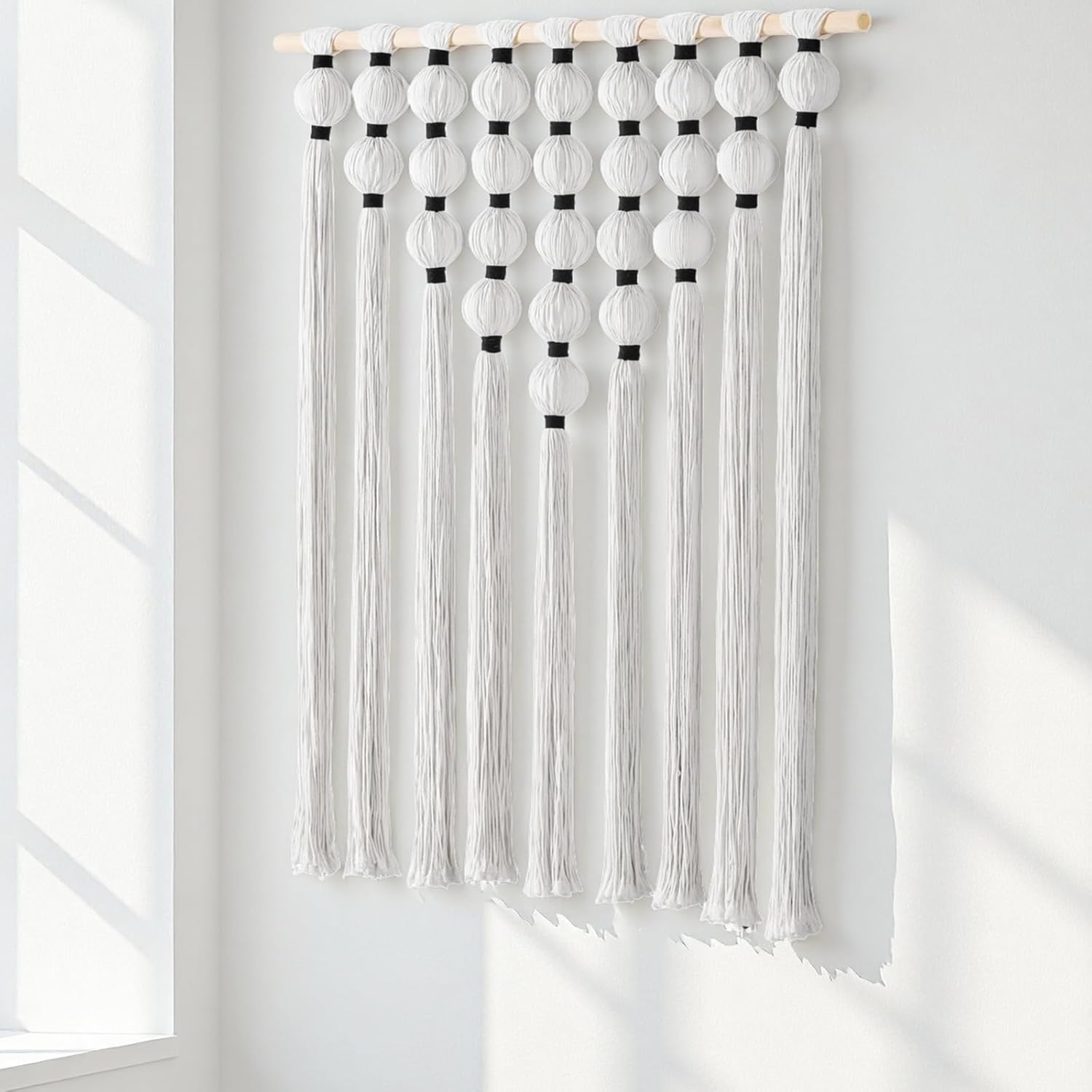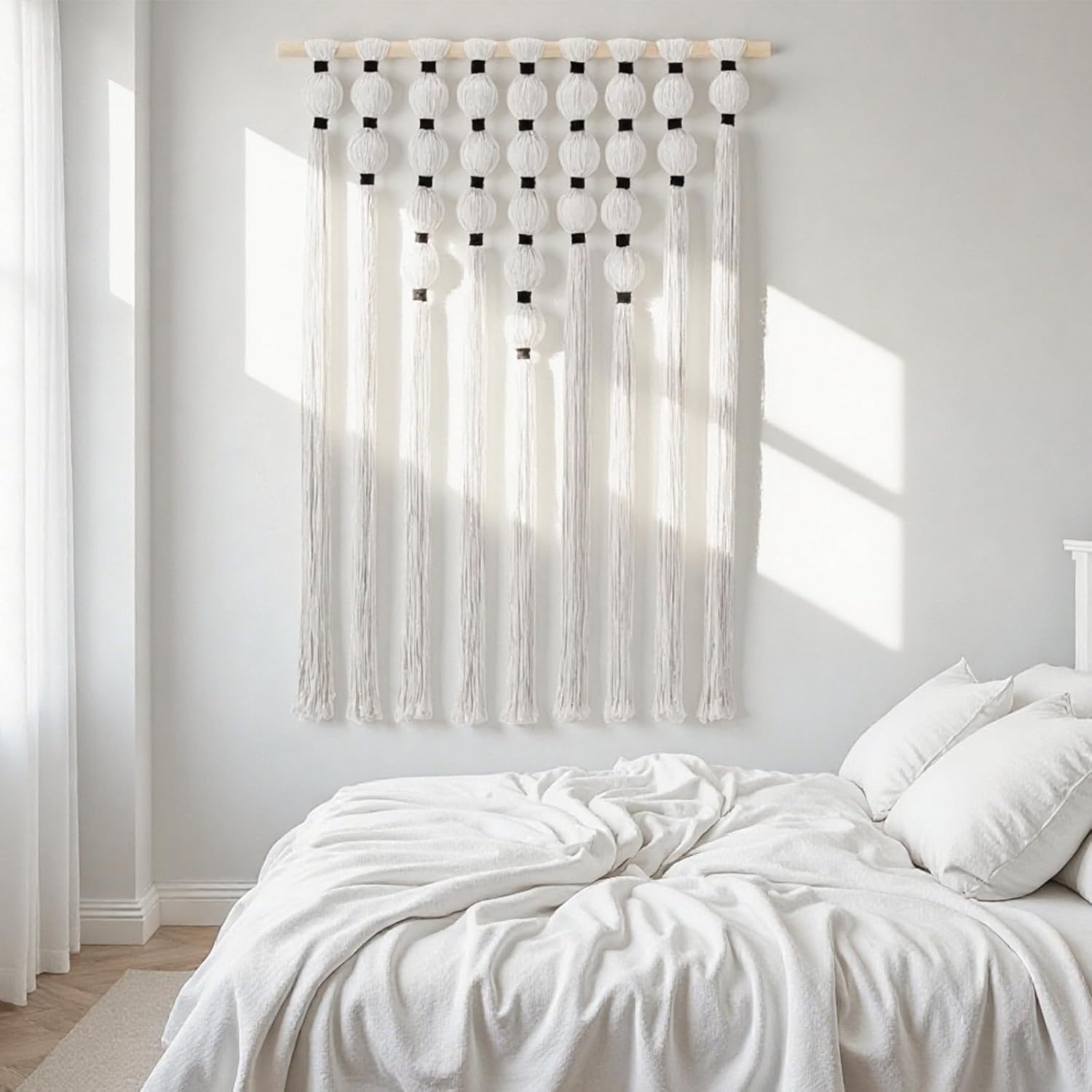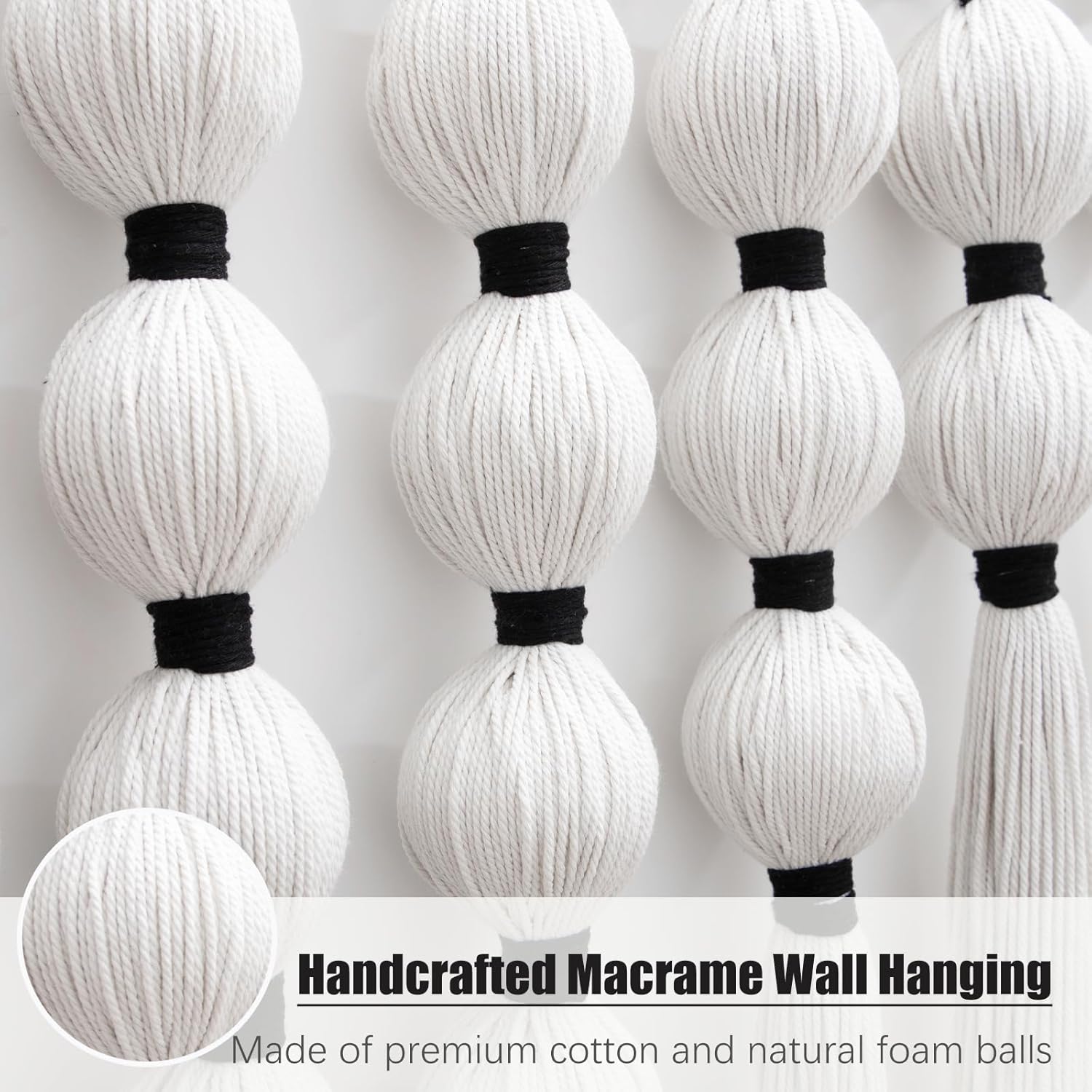 - Large Macrame Wall Hanging: Size: 31.5"W by 39.4"H, made of premium cotton and natural foam balls, suitable for living room, bedroom, dining room, entrance, office, cafe, etc.