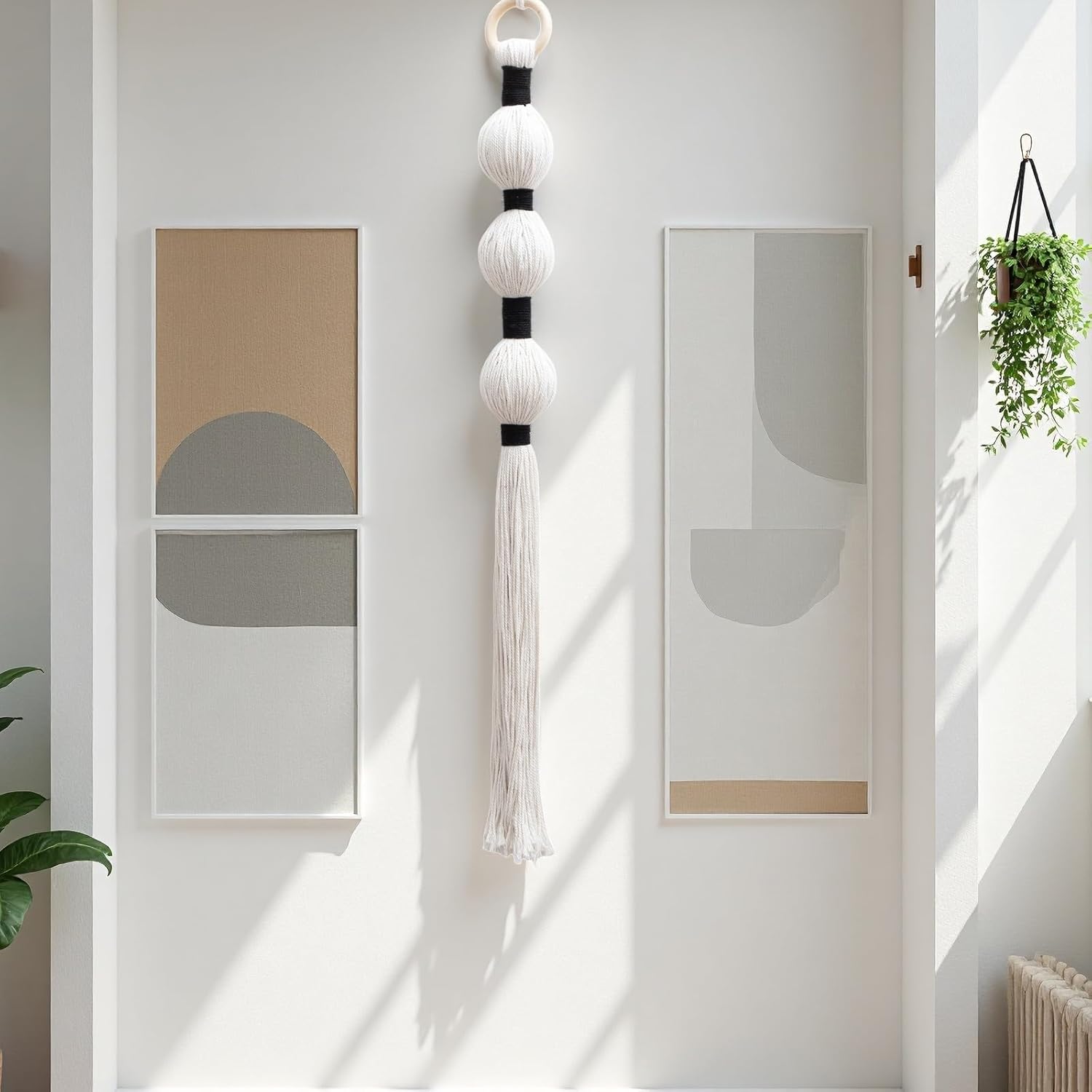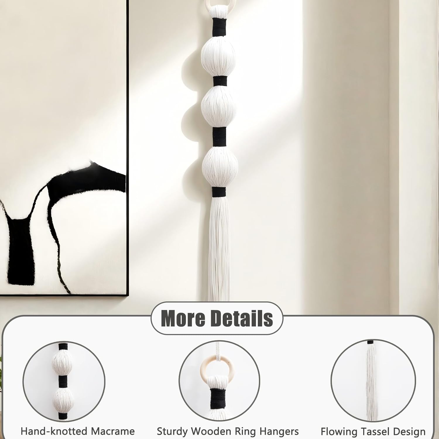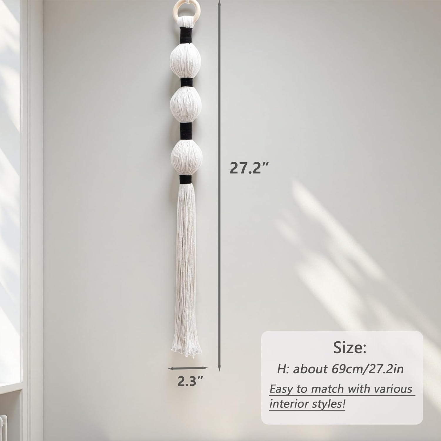 - Macrame Wall Hanging: Size: 27.2“H(69cm), made of premium cotton and natural foam balls, suitable for living room, bedroom, dining room, entrance, office, cafe, etc.