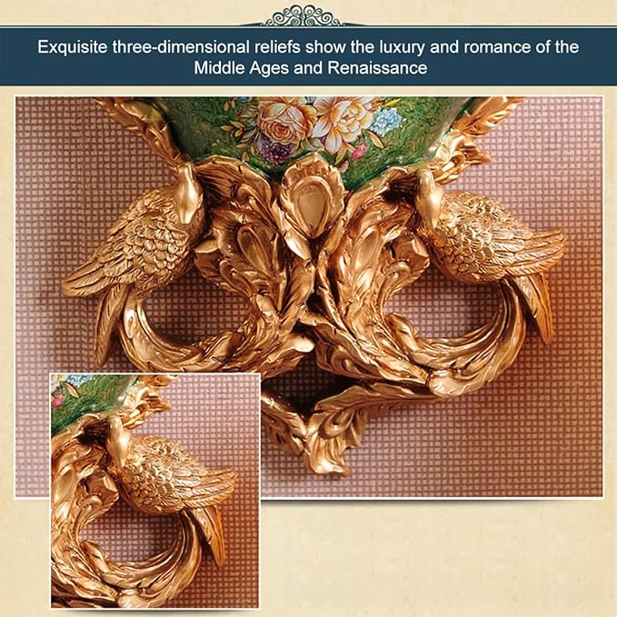 - Medieval Gold Carved Vase - A True Masterpiece: The centerpiece of this luxurious set is the vase, showcasing authentic medieval gold carved craftsmanship and a striking glossy gold-edged printed pattern. This intricately detailed piece serves not only as a container but as a work of art in its own right, perfectly complementing the silk faux blooms.