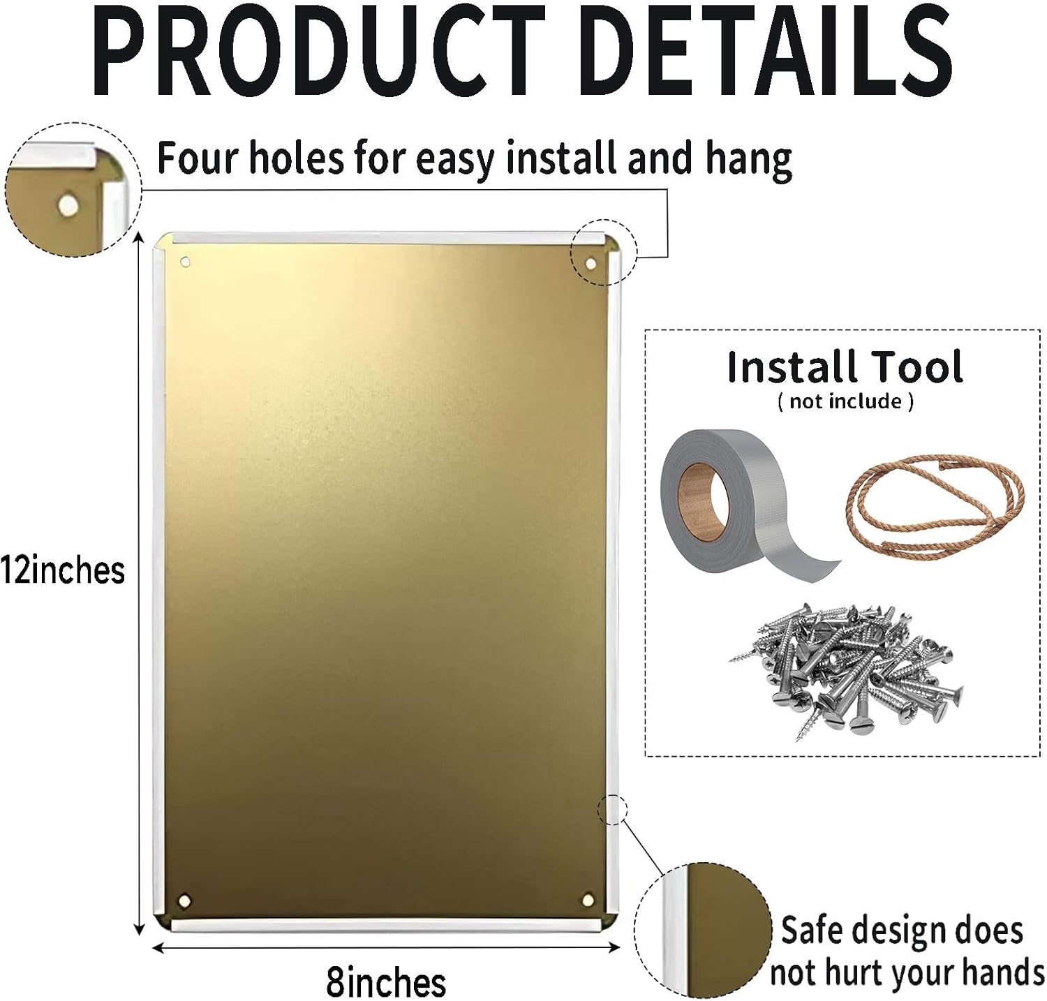 - Easy installation:Our sign is 12×8 inches, we are pre-drilled four holes in tin sign, can used nails, screws, and tape installation and mount, the retro signs rolled edge design is safe and doesn't hurt your hands