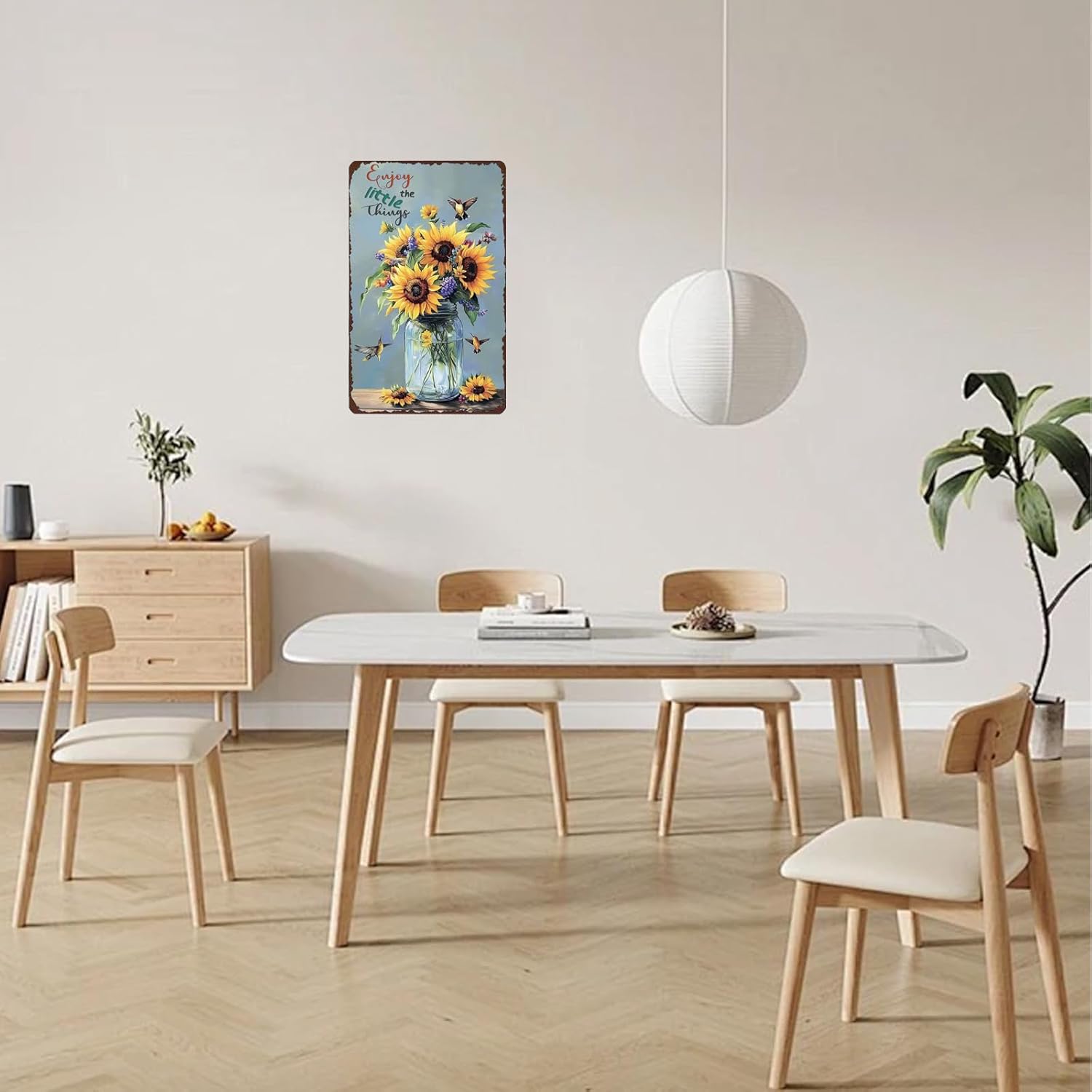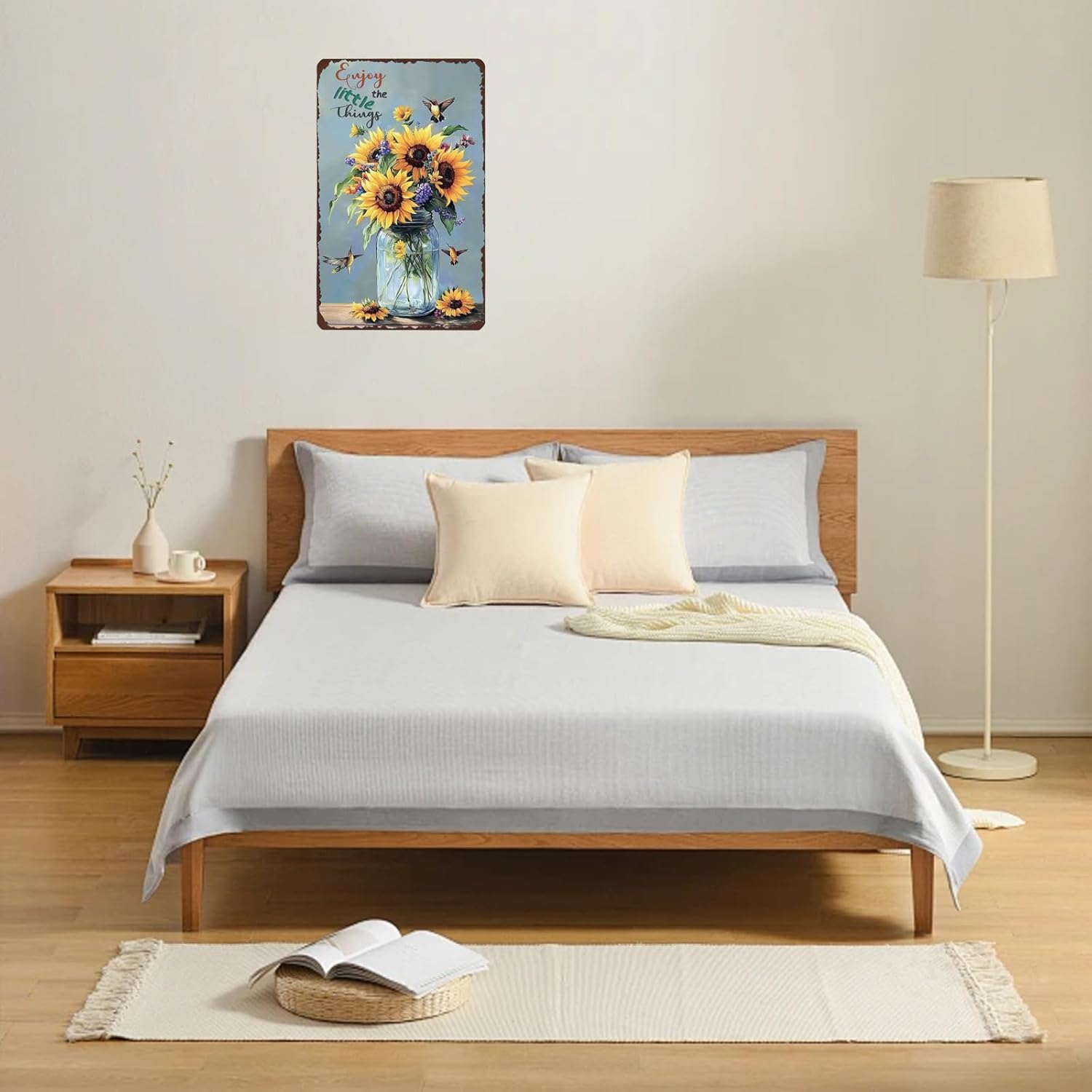 Enjoy The Little Things Sunflowers And Hummingbird Metal Sign Vintage Tin Sign Funny Wall Decor for Garden Kitchen Backyard Bedroom Home 12×8 Inch