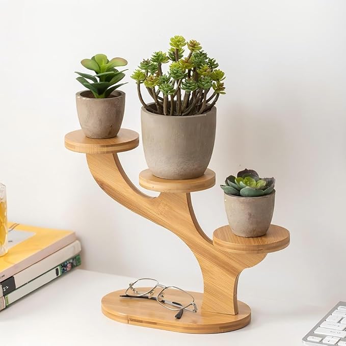 3 Tiered Desk Plant Stand Bamboo Tree Plant Shelf Tabletop Succulent Herb Stand Desktop Plant Stand Indoor Plant Rack for in Living Room Office Decoration (3 Tiered)