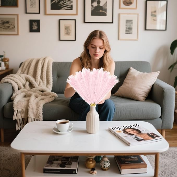 - 【Beautiful and Boho Decoration】With rich bohemian style, artificial pompas grass stems can easily blend. They are especially suitable for vertical decoration, the corner of the living room, the end of the hallway, or on both sides of the TV wall. It is an excellent choice whether as a gift or bohemian living room decoration, vase decoration, displayed in your hallway, kitchen, living room, bedroom, front Hall, dining room, or entryway.