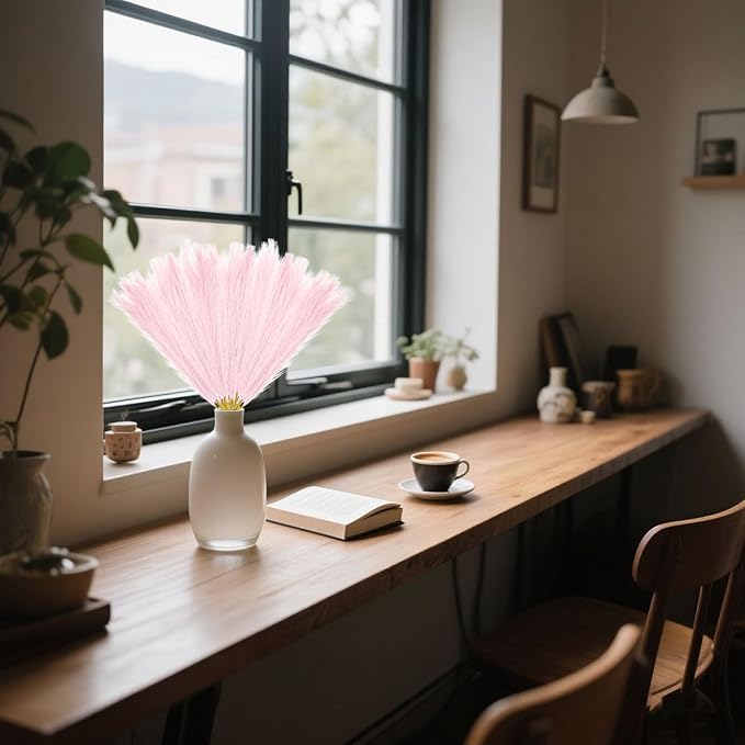 - 【Pampas Grass Bluk】Each pack contains 30 pieces of artificial reed stems, each total length is 17 inches long, the length of the stem part is 3 inches, carefully designed with smooth lines and lifelike shape, can add a touch of boho to the living room, bedroom, study, and other spaces. Whether placed alone or matched with other decorations, it can easily create an artistic atmosphere.