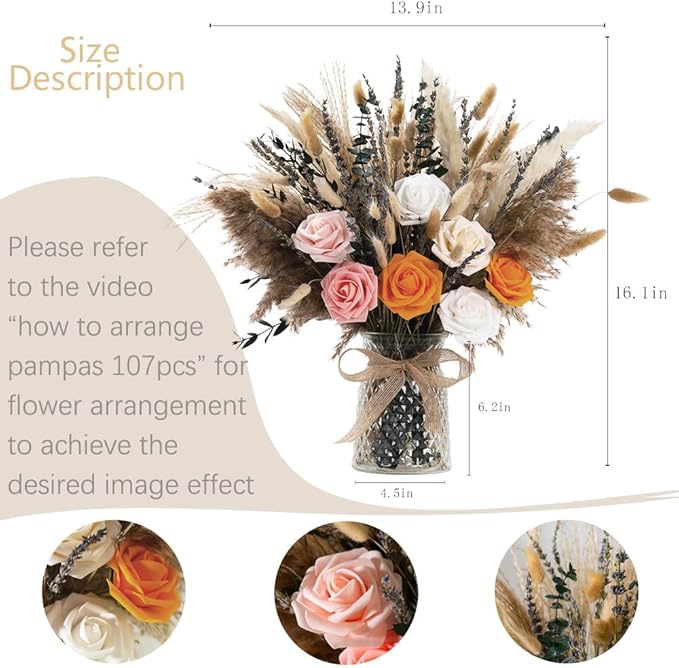 - Natural Dried Flowers in Glass Vase: Pampas grass fits effortlessly with boho, farmhouse, wedding, and modern style decorations, bring elegance and charm atmosphere!