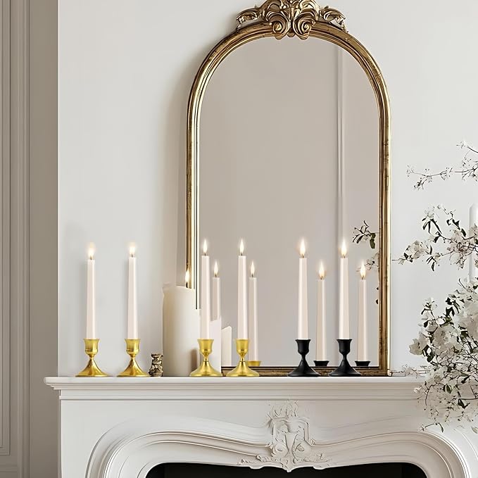 - ELEGANT DESIGN:ECHFSM gold candle holders finish has a brushed, vintage look that feels both classic and elegant,just the right touch of warmth and sophistication for seasonal decorating. These brass candlestick holders standard taper candles or LED alternatives , gold taper candle holder with a luxurious gold finish,Resists tarnishing and adds timeless elegance to any space