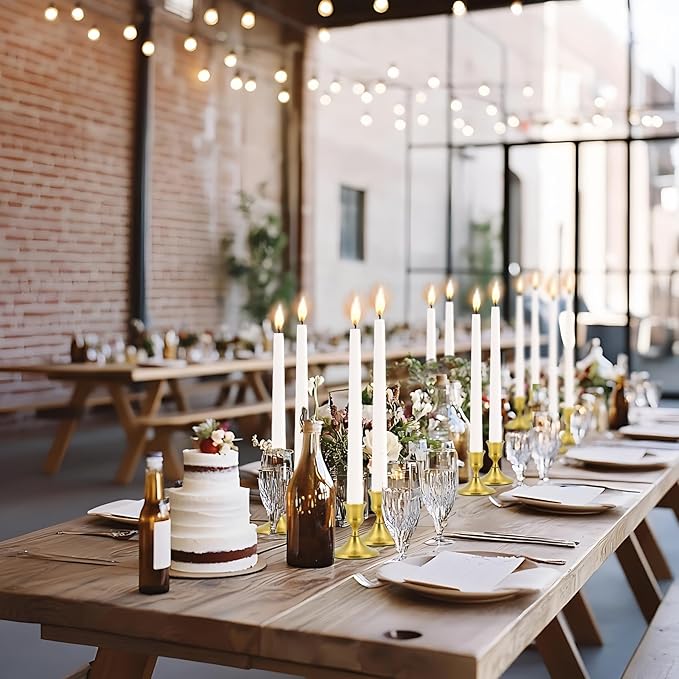 - SHORT BRASS CANDLE HOLDER SET:Elegant and Timeless Touch for Any Setting,Each set includes 6 brass candlestick holder,The Mood with Timeless Brilliance,Elevate your moments with our hand-finished brass taper candle holders. Designed to catch and reflect candlelight, their radiant gold surface adds instant sophistication to everyday dinners or special celebrations